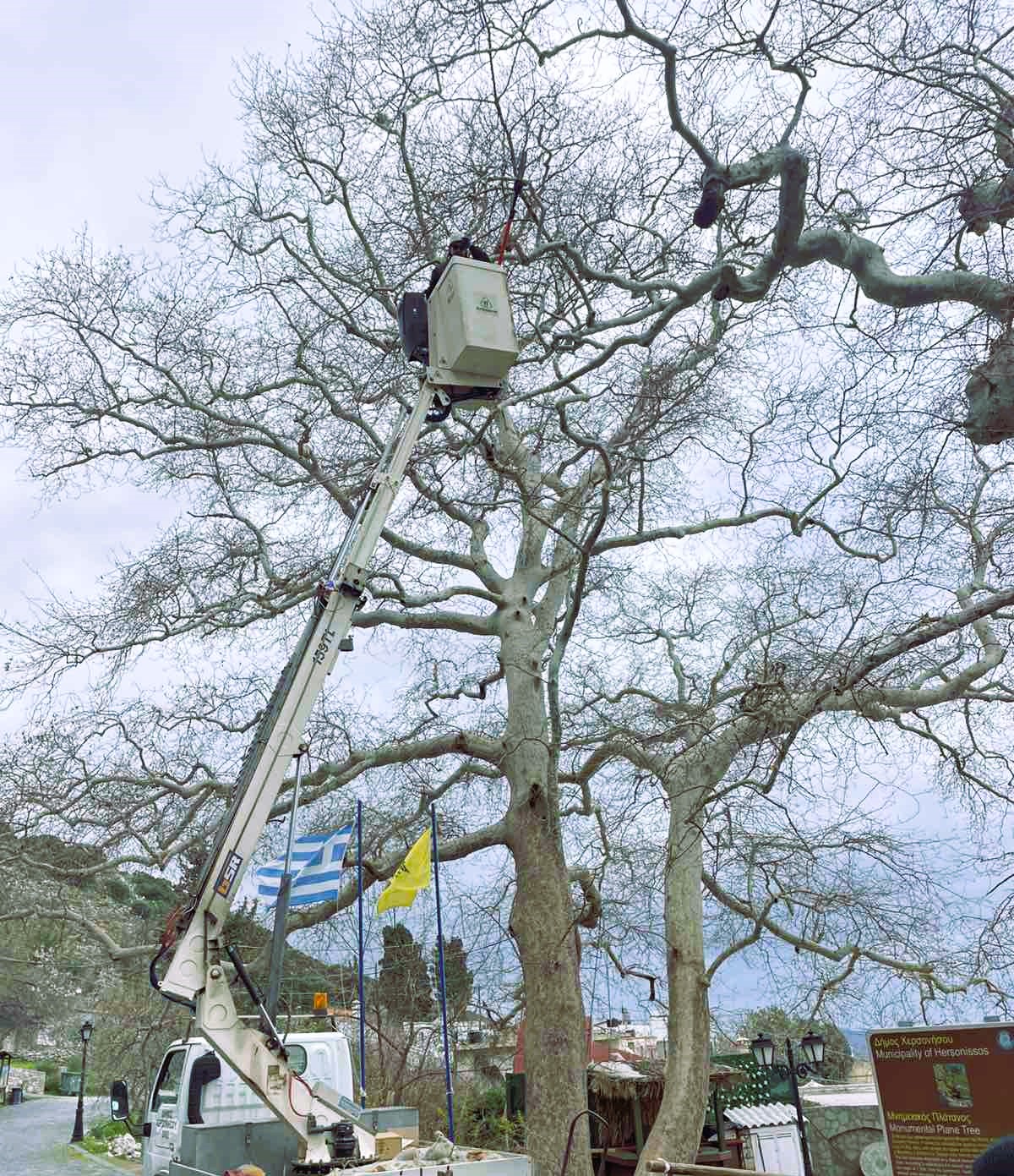 Συνεχίζει τις δράσεις προστασίας του μνημειακού πλατάνου στο Κράσι ο Δήμος Χερσονήσου, σύμφωνα με τις υποδείξεις της Διεύθυνσης Δασών Ηρακλείου και εν αναμονή της σχετικής μελέτης ανάδειξης και προστασίας του δέντρου από το Δημοκρίτειο Πανεπιστήμιο. Μετά από τη σχετική απόφαση της Διεύθυνσης Δασών Ηρακλείου, η οποία ήρθε ως απάντηση στο υπ’ αριθμόν 125 της 07/01/2025 έγγραφό του Δήμου Χερσονήσου, οι αρμόδιες υπηρεσίες πρασίνου του Δήμου προχώρησαν στις απαραίτητες κλαδεύσεις του πλατάνου, με τις υποδείξεις και την επίβλεψη της Διεύθυνσης Δασών.