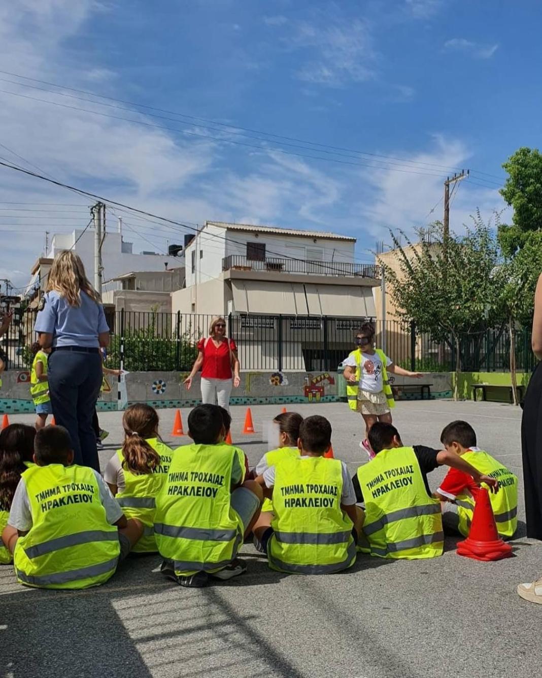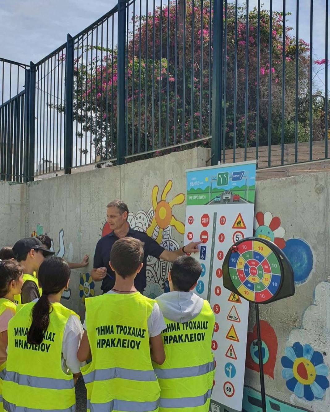 Μαθητές και μαθήτριες συμμετείχαν στην Ειδική Εκπαιδευτική Δράση που έχει σχεδιάσει η Τροχαία Ηρακλείου με στόχο την αφύπνιση τους σε σχέση με τις μετακινήσεις. Τα παιδιά εξοικειώθηκαν με τους κανόνες του Κώδικα Οδικής Κυκλοφορίας και τις πινακίδες σήμανσης και ψυχαγωγήθηκαν με διαδραστικά παιχνίδια που καλλιεργούν τους κανόνες οδικής συμπεριφοράς και κυκλοφορίας όπως είναι τα γυαλιά προσομοίωσης μέθης. Μετά το τέλος της δράσης, πλούσια δώρα περίμεναν τους μικρούς νικητές.
