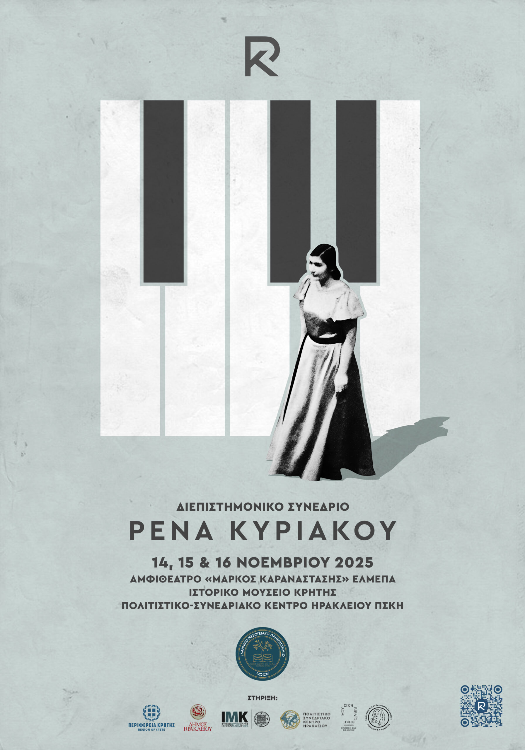 Με ιδιαίτερη χαρά το Ελληνικό Μεσογειακό Πανεπιστήμιο (ΕΛΜΕΠΑ) διοργανώνει το Διεθνές Διεπιστημονικό Συνέδριο «Ρένα Κυριακού», το οποίο θα πραγματοποιηθεί στο Ηράκλειο Κρήτης στις 14, 15 και 16 Νοεμβρίου 2025. Το Συνέδριο στηρίζεται από την Περιφέρεια Κρήτης, τελεί υπό την αιγίδα του Δήμου Ηρακλείου και συνδιοργανώνεται από την Εταιρία Κρητικών Ιστορικών Μελετών (ΕΚΙΜ / Ιστορικό Μουσείο Κρήτης), τη Μουσική Βιβλιοθήκη «Λίλιαν Βουδούρη» του Συλλόγου Οι Φίλοι της Μουσικής, τον Σύνδεσμο Μελών Γυναικείων Σωματείων Ηρακλείου και Νομού Ηρακλείου και το Πολιτιστικό Συνεδριακό Κέντρο Ηρακλείου (ΠΣΚΗ).