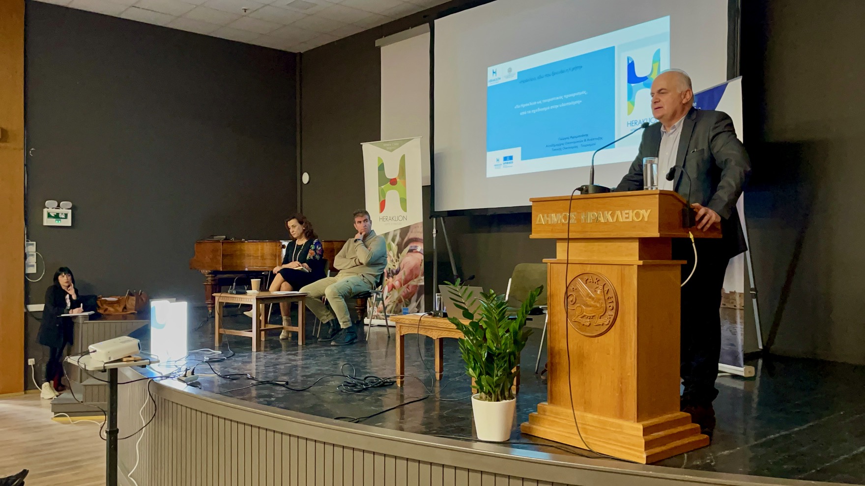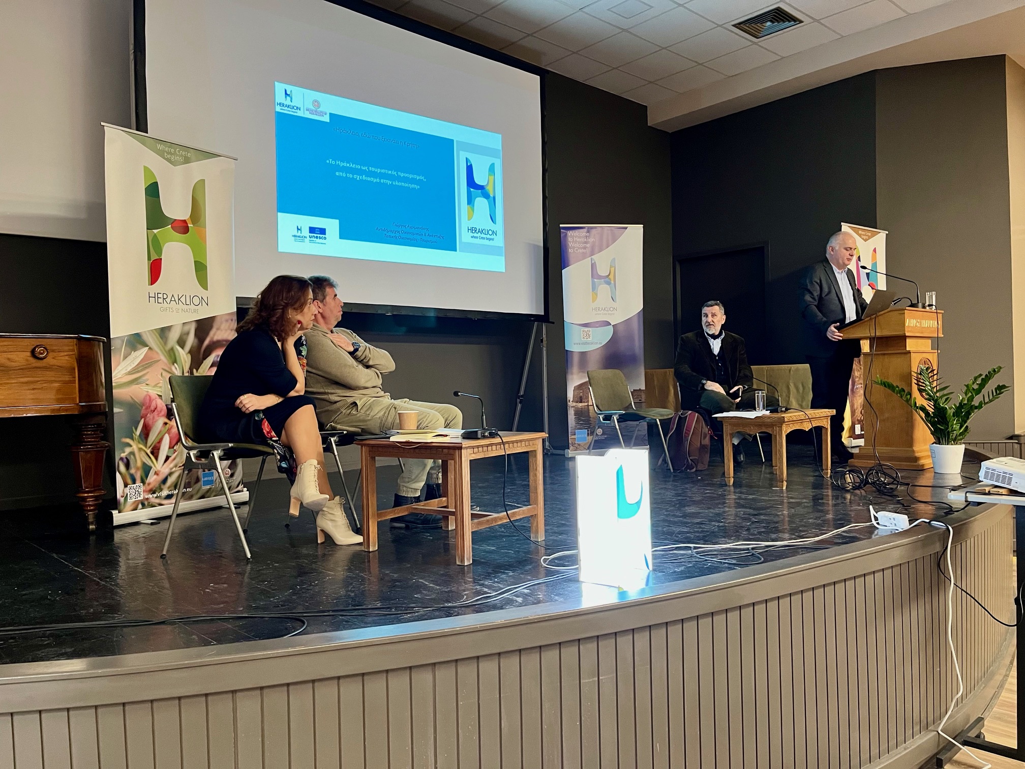 Ο Αντιδήμαρχος Οικονομικών και Ανάπτυξης της Τοπικής Οικονομίας κ. Γιώργος Αγριμανάκης αφού αναφέρθηκε στην σημαντική δουλειά που έχει γίνει τα τελευταία χρόνια στον τομέα, από το τμήμα τουρισμού και τον Αντιδήμαρχο Γιώργο Σισαμάκη με κορωνίδα την ένταξη μας στην Unesco ως δημιουργική πόλη γαστρονομίας έδωσε έμφαση στο όραμα της νέας Δημοτικής Αρχής: «Έχουμε ένα μοναδικό μνημειακό απόθεμα αλλά και αξιόλογη πολιτιστική κληρονομιά, έχουμε τοπικά προϊόντα και γαστρονομία, έχουμε την κρητική φιλοξενία και μια ενδοχώρα με κρυμμένους θησαυρούς και καλούμαστε όλοι μαζί να αξιοποιήσουμε τα συγκριτικά μας αυτά πλεονεκτήματα για ένα Ηράκλειο Ευρωμεσογειακό προορισμό και όχι μια απλή πύλη εισόδου» τόνισε ο Αντιδήμαρχος.