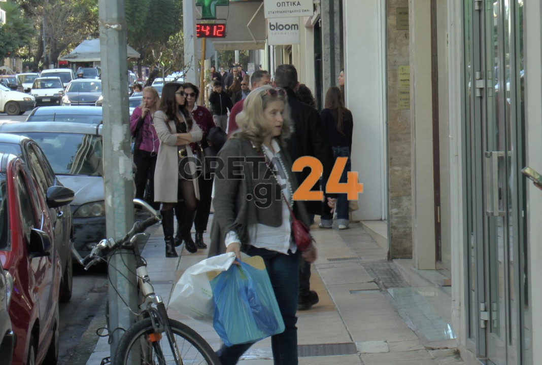 Μέχρι και λίγο πριν τις 18:00, οπότε και κλείνουν τα εμπορικά καταστήματα, η κίνηση στο κέντρο των Χανίων ήταν ιδιαίτερα αυξημένη.