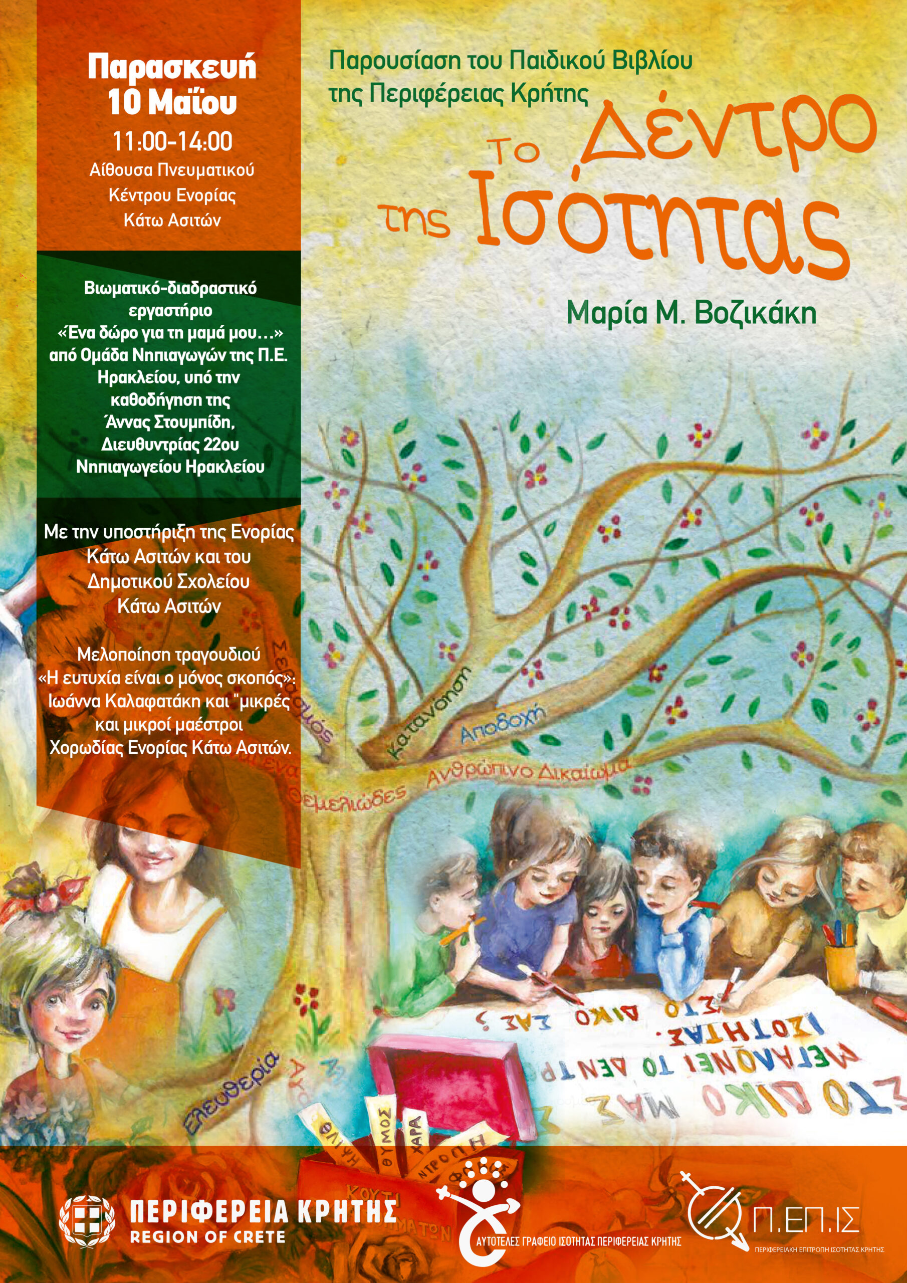 Το άρθρο “Το παιδικό βιβλίο της Περιφέρειας Κρήτης «Το Δέντρο της Ισότητας» συνεχίζει το «ταξίδι» του σε Ηράκλειο και Ασίτες“, δημοσιεύθηκε για πρώτη φορά στο CRETA24.