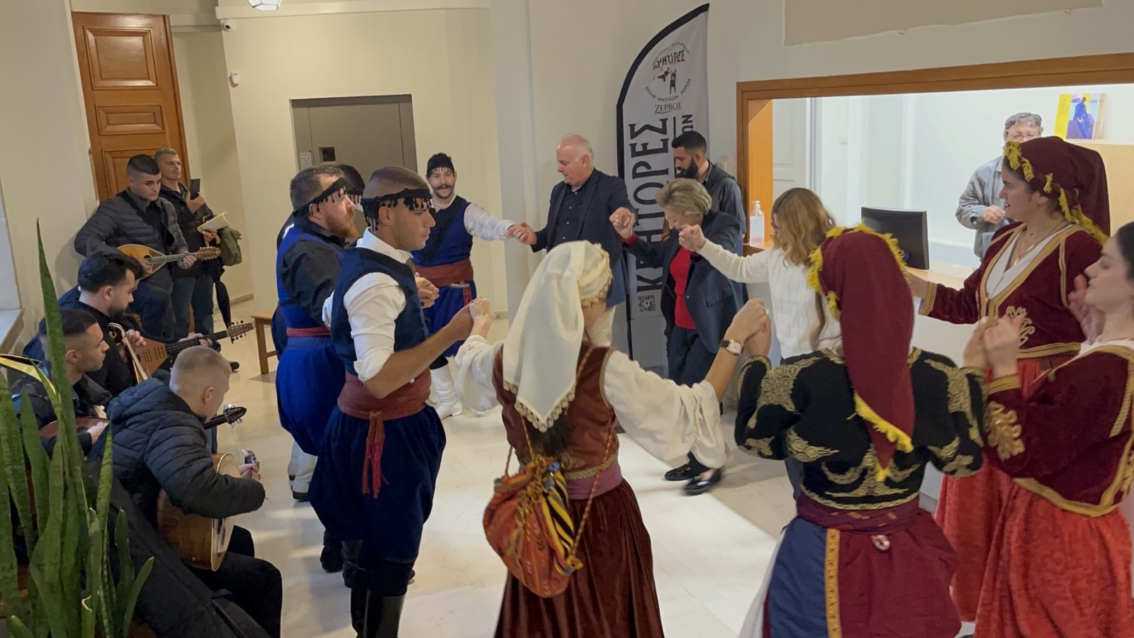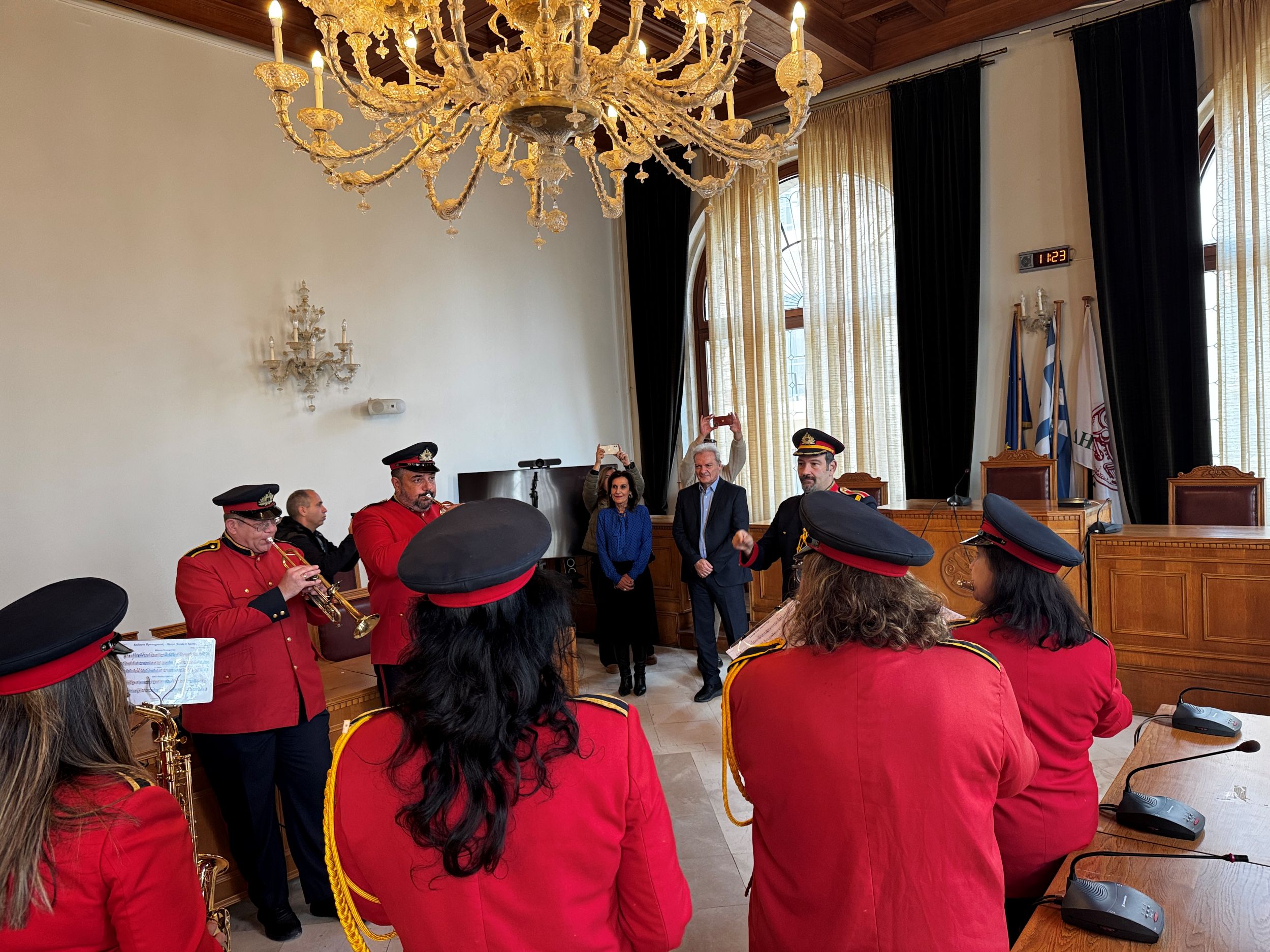 Νωρίτερα, ο Δήμαρχος Ηρακλείου είχε υποδεχθεί μαζί με τους Αντιδημάρχους Τάσο Τσατσάκη, Ρένα Παπαδάκη, Γιώργο Αγριμανάκη καθώς και τη Γενική Γραμματέα του Δήμου Μαρία Σκραφνάκη, τους μουσικούς της ΣΕΑΠ, τη Σχολή Κρητικού Χορού Κρήτωρες, τη Φιλαρμονική Ορχήστρα του Δήμου Ηρακλείου και το Λύκειο Ελληνίδων που πλημμύρισαν τη Λότζια με εορταστικές πρωτοχρονιάτικες μελωδίες και κάλαντα. Ο Αλέξης Καλοκαιρινός εξέφρασε τις ευχαριστίες του και αντάλλαξε ευχές με την Πρόεδρο του Λυκείου Ελληνίδων Ηρακλείου και Προϊσταμένη της Διαχειριστικής Αρχής Μαρία Κασωτάκη, τον Αρχιμουσικό της Φιλαρμονικής Λεωνίδα Τζωρτζάκη καθώς και με όλες και όλους, μικρούς και μεγάλους, για υγεία και ευημερία για το νέο έτος.