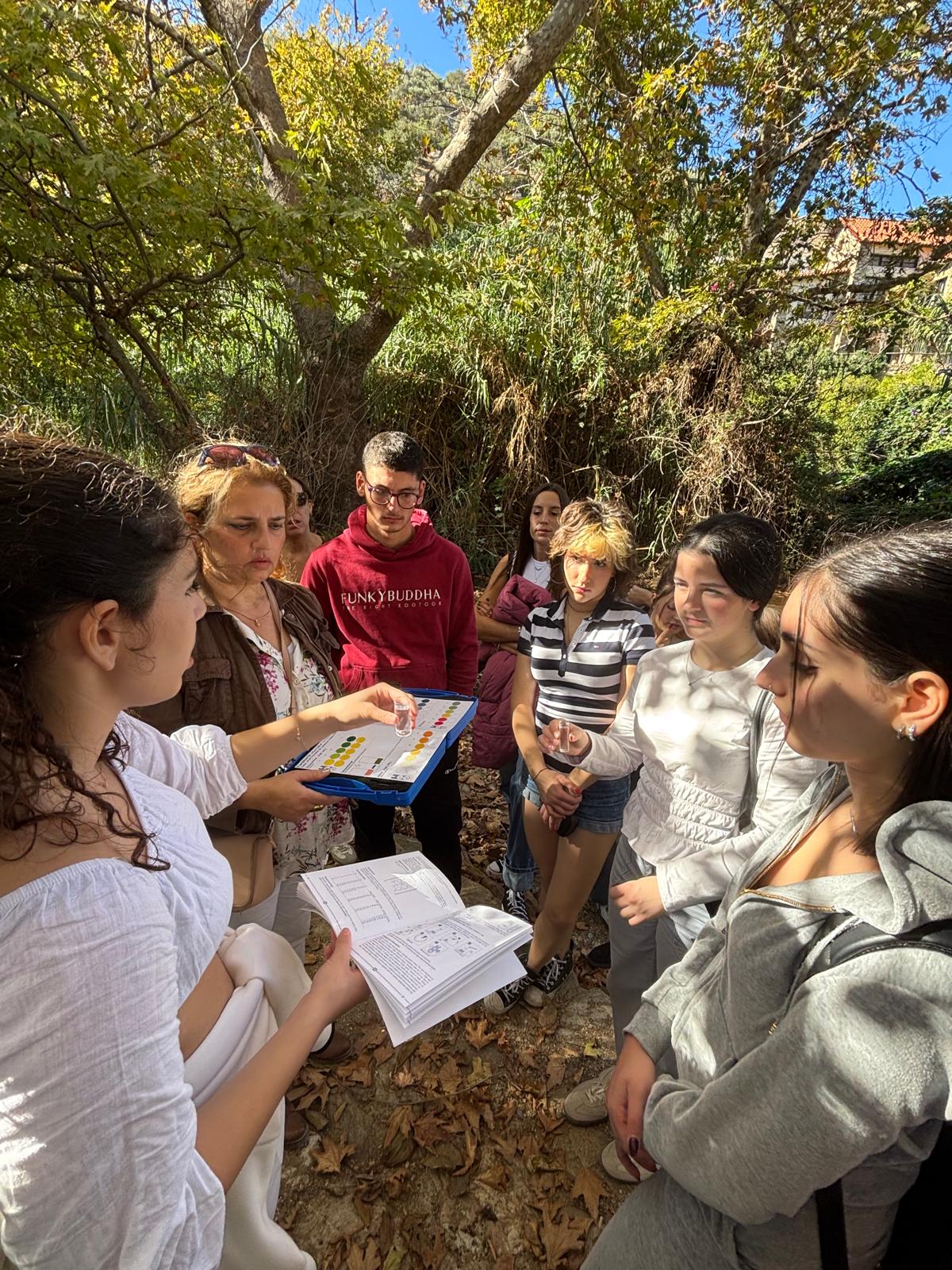 Επιπλέον, το απόγευμα είχαν την ευκαιρία να περιηγηθούν στα αξιοθέατα της πόλης μας με ξεναγούς τους μαθητές του σχολείου μας. Κατά την διάρκεια της εβδομάδας φιλοξενίας πραγματοποιήθηκε επίσκεψη στη Μονή Αρκαδίου, διάβαση στο φαράγγι του Αγίου Αντωνίου, επίσκεψη στην πόλη του Ρεθύμνου, ξενάγηση στον αρχαιολογικό χώρο της Κνωσού και επιστημονικά πειράματα στο ποτάμι του Φόδελε. Οι φιλοξενούμενοι εκπαιδευτικοί και μαθητές συμμετείχαν σε εργαστήριο δημιουργίας φυσικών φίλτρων καθαρισμού νερού, καθώς και σε εργαστήριο δημιουργίας φυτικών βαφών υφασμάτων. Στο ποτάμι του Φόδελε έγιναν πειράματα ελέγχου της ποιότητας του νερού με χρήση χρωματομετρικών μεθόδων καθώς και πειράματα ελέγχου των οργανισμών που ζουν στο νερό του ποταμού με τη χρήση στερεοσκοπίων. Επιπλέον, συμμετείχαν σε εργαστήριο επαναχρησιμοποίησης υλικών ένδυσης για τη δημιουργία νέων χρηστικών αντικειμένων. Επισκέφθηκαν το Γεωπονικό Τμήμα του Ελληνικού Μεσογειακού Πανεπιστημίου (ΕΛΜΕΠΑ), όπου ξεναγήθηκαν και ενημερώθηκαν για τα συστήματα βιώσιμης διαχείρισης του νερού που εφαρμόζονται στις καλλιέργειες. Επίσης, συμμετείχαν σε εργαστήριο με θέμα την ασφάλεια στο διαδίκτυο. Τέλος, μετά από γόνιμη ανταλλαγή απόψεων και αναλυτικών συζητήσεων μεταξύ των εκπαιδευτικών έγινε και ο προγραμματισμός των επικείμενων εργασιών για την ολοκλήρωση του προγράμματος, καθορίστηκε το χρονικό πλαίσιο, ο τρόπος εργασίας και συζητήθηκε η δημιουργία των απαιτούμενων του προγράμματος παραδοτέων.
