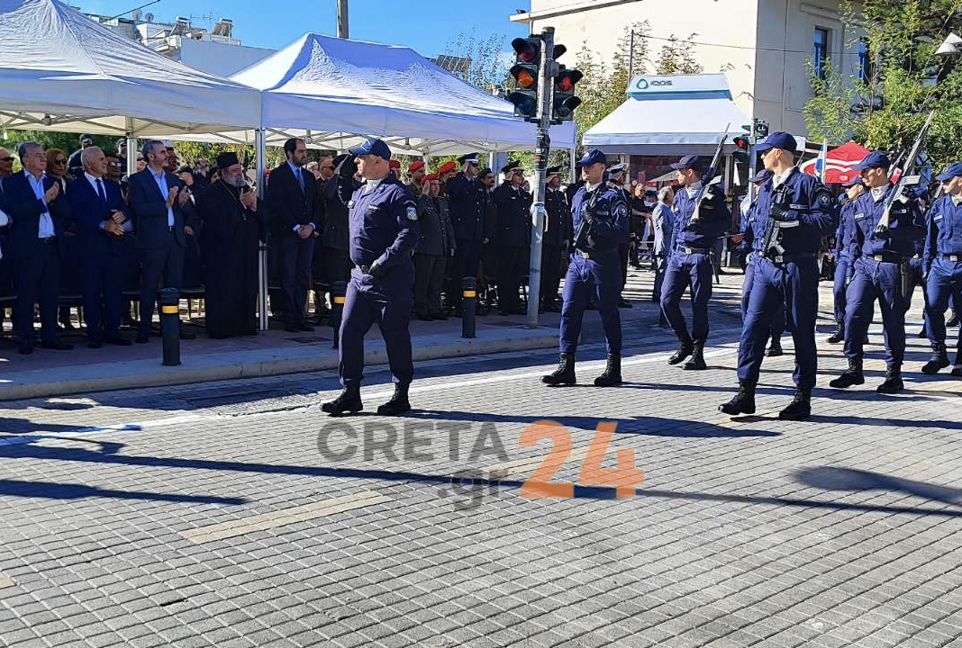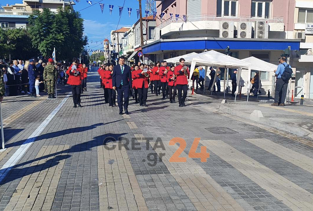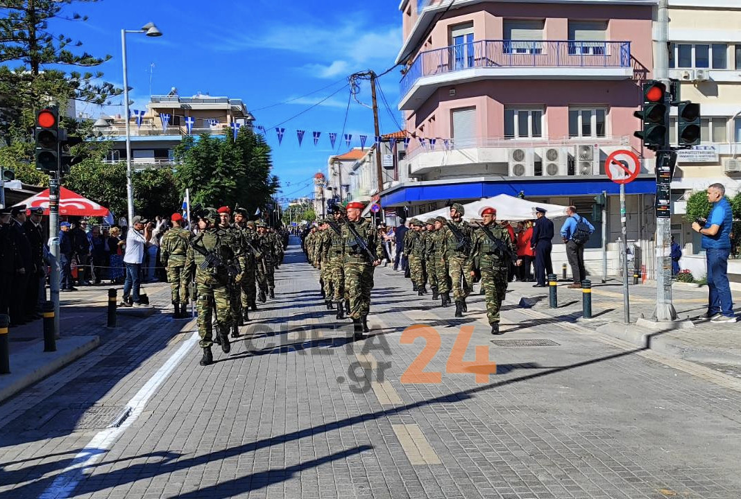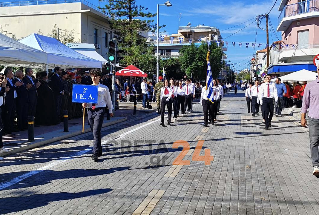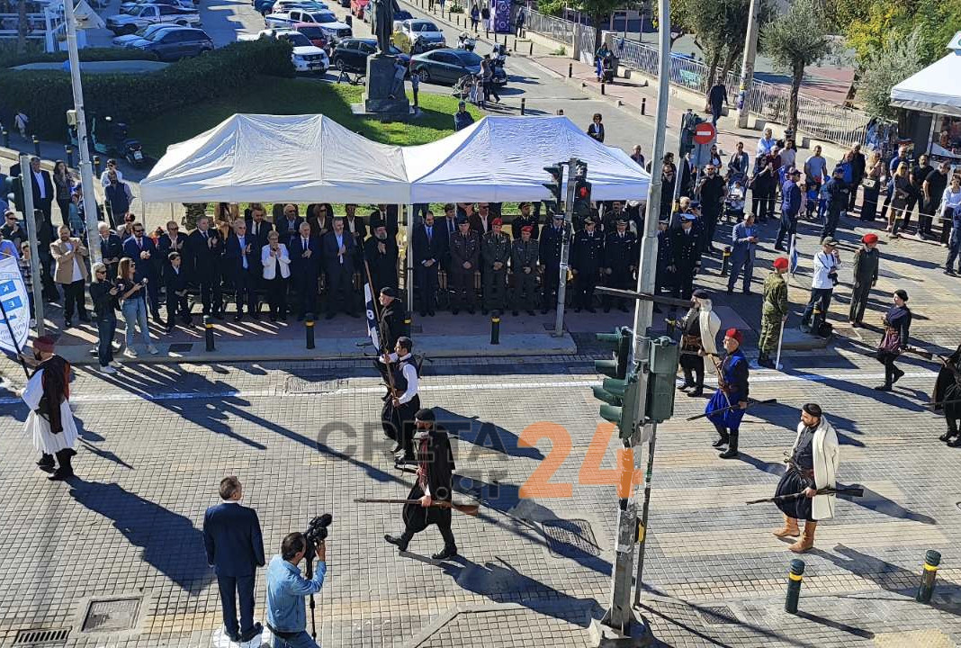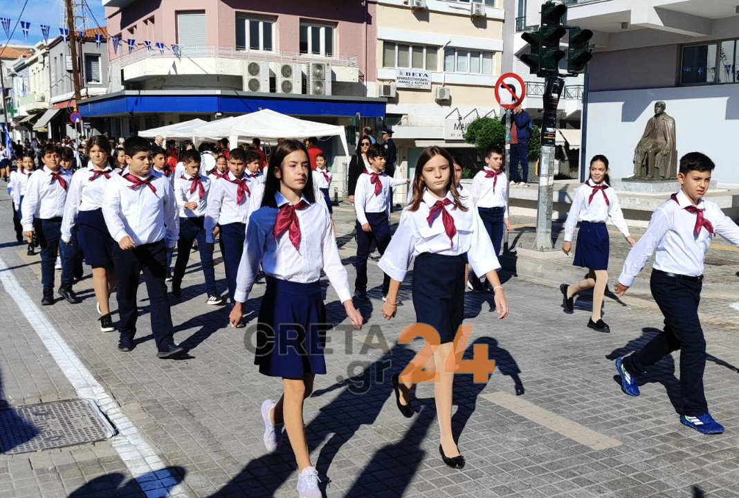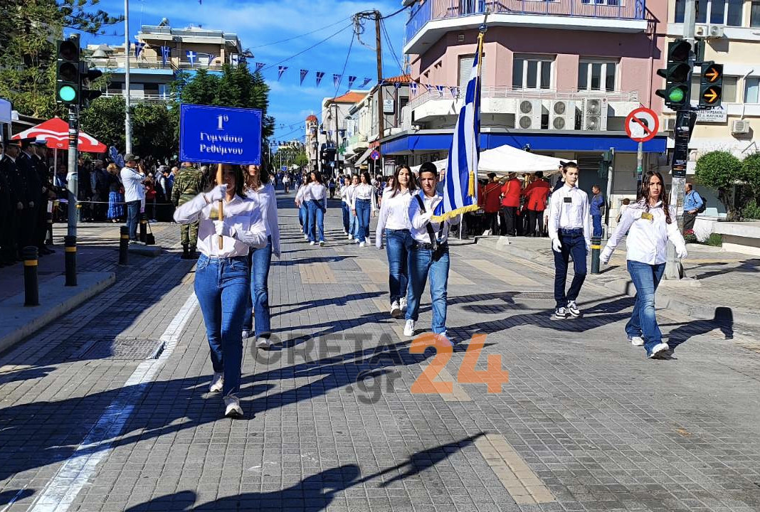 Μαθητές, μέλη πολιτιστικών συλλόγων και στρατιωτικά τμήματα παρέλασαν νωρίτερα το πρωί στη λεωφόρο Κουντουριώτη στο Ρέθυμνο.