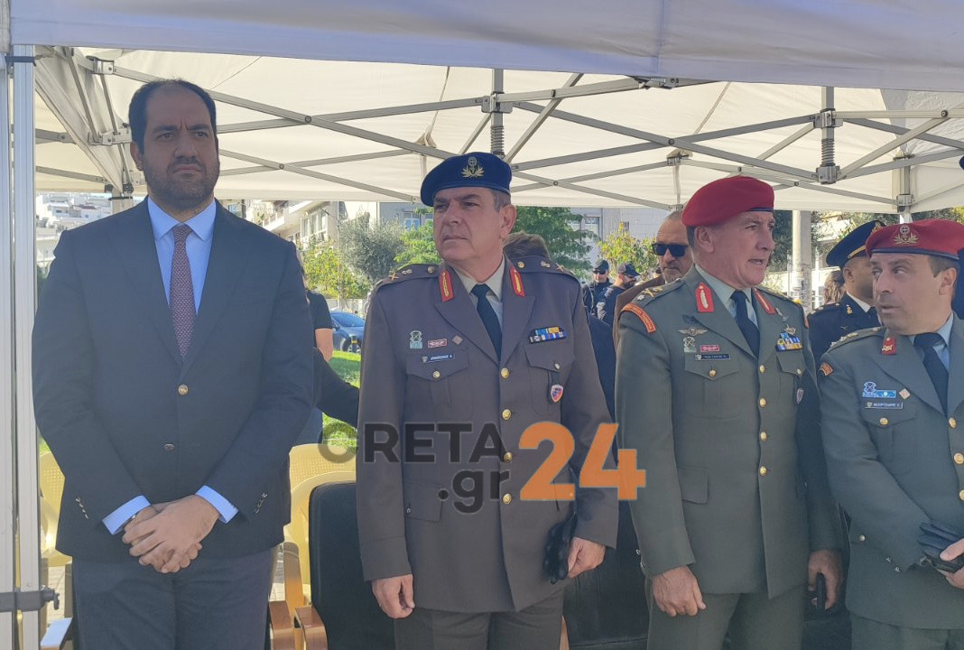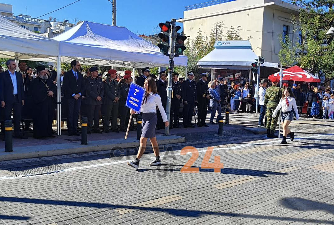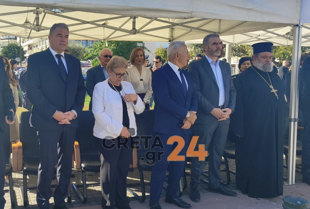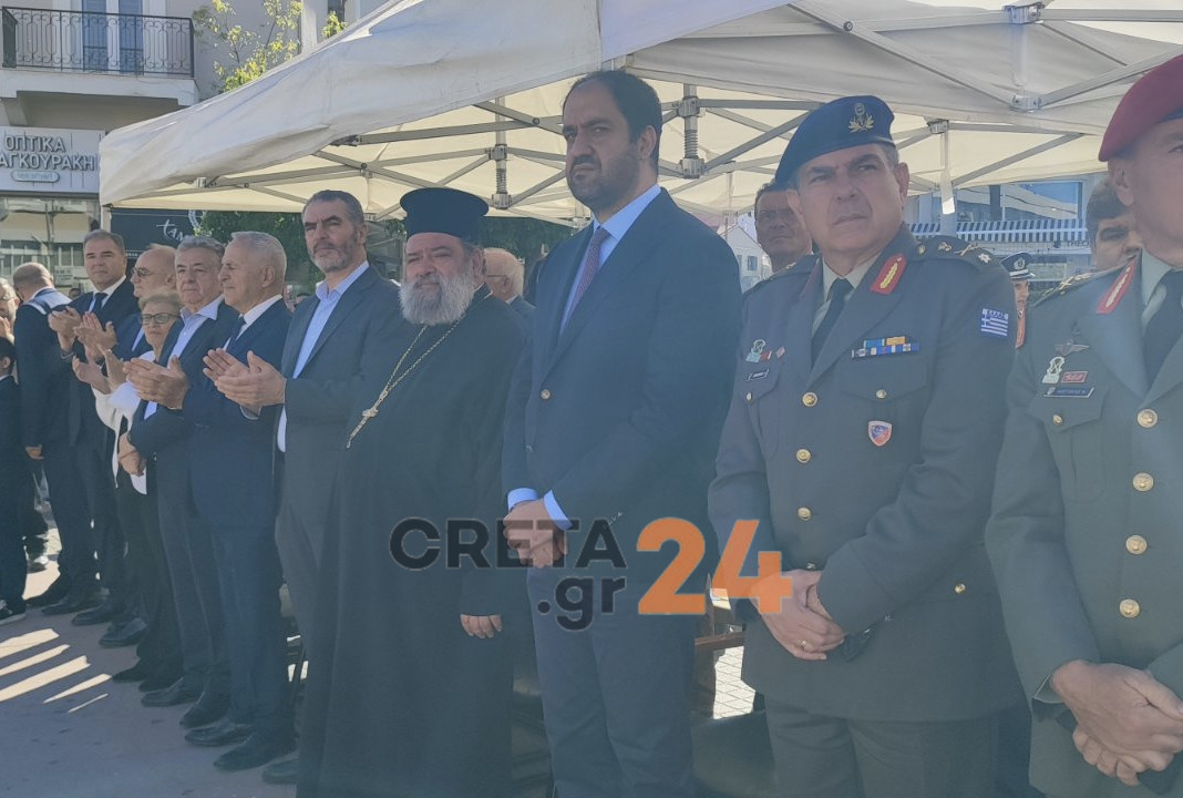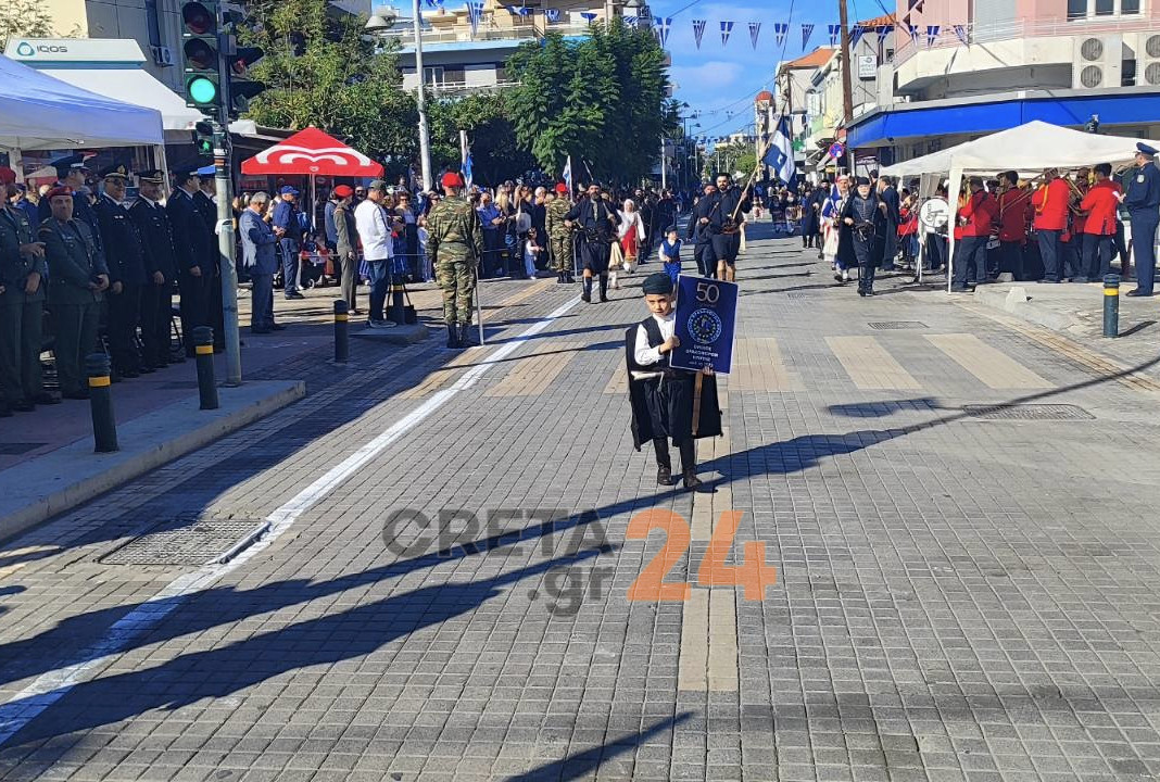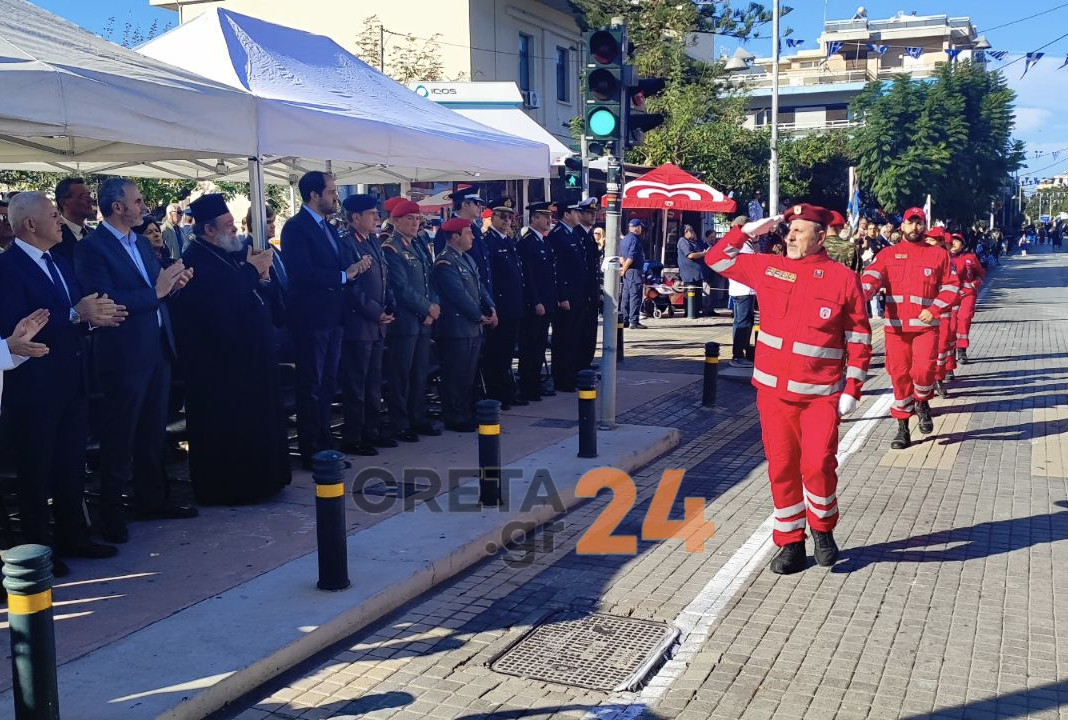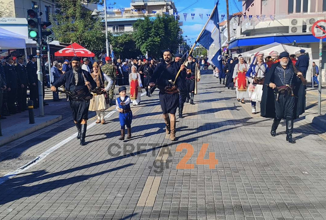 Μαθητές, μέλη πολιτιστικών συλλόγων και στρατιωτικά τμήματα παρέλασαν νωρίτερα το πρωί στη λεωφόρο Κουντουριώτη στο Ρέθυμνο.