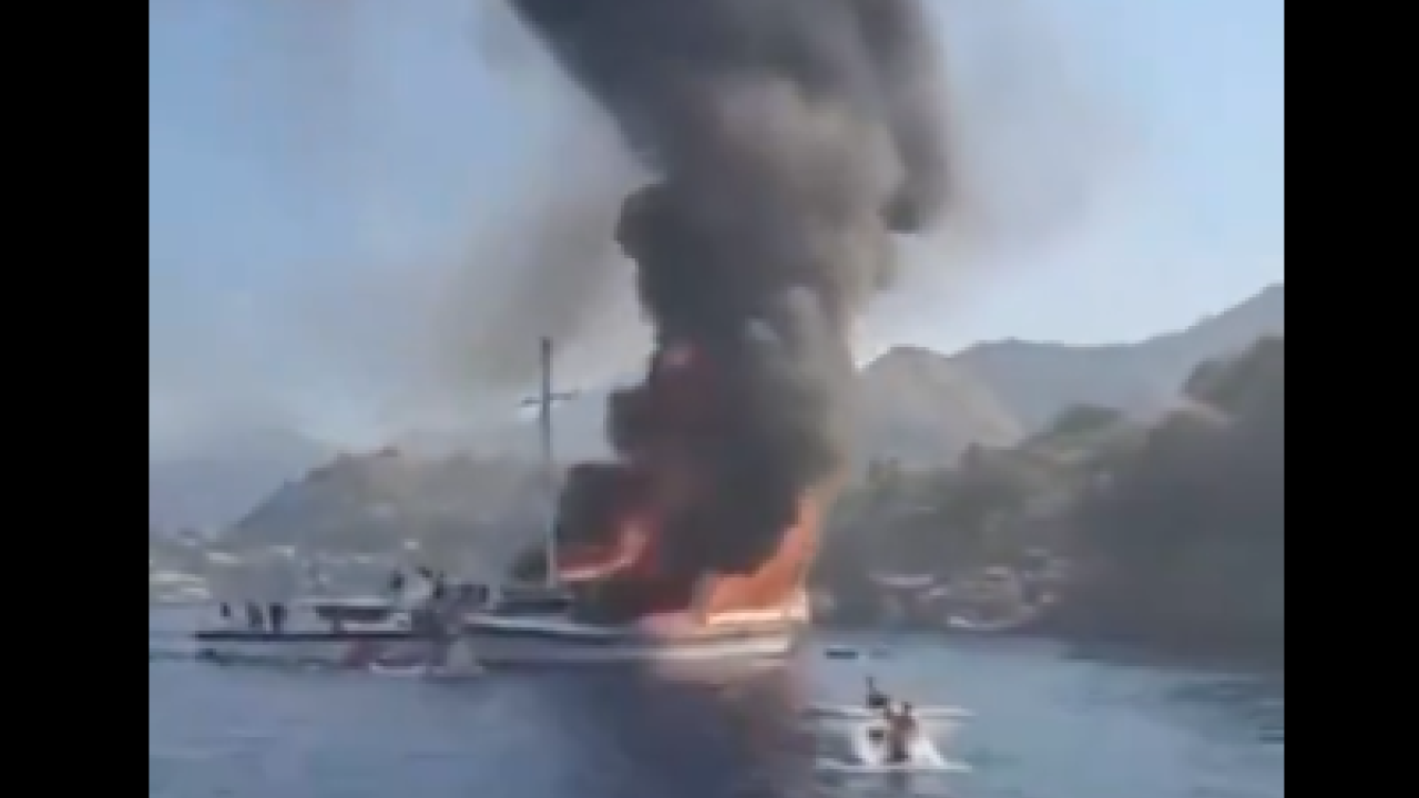 Many passengers jumped into the water to escape the blaze, while others ran to the other boats. There are no reports of casualties at this time.
