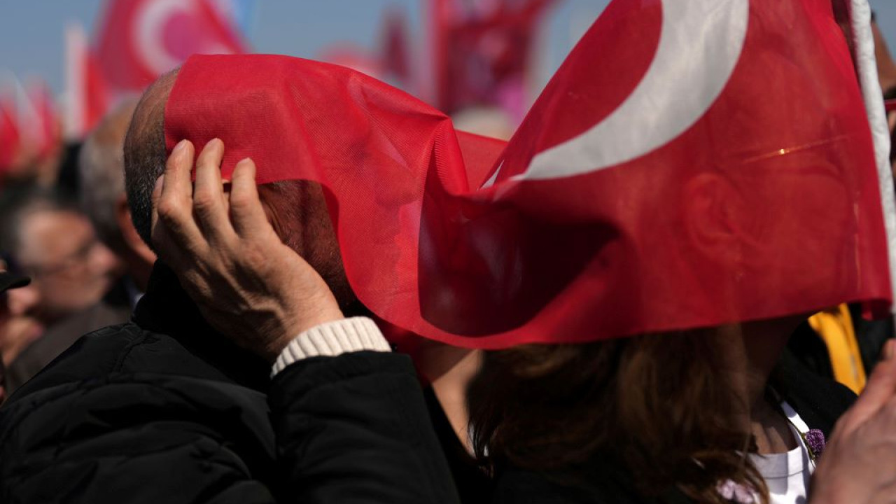 Χτες, Κυριακή, πραγματοποιήθηκε μεγάλη μαζική συγκέντρωση διαμαρτυρίας του CHP στην ‘Αγκυρα, μία από τις μεγαλύτερες συγκεντρώσεις που πργματοποιούνται κάθε εβδομάδα μετά τη σύλληψη του δημάρχου Κωνσταντινούπολης του CHP Εκρέμ Ιμάμογλου στις 19 Μαρτίου.