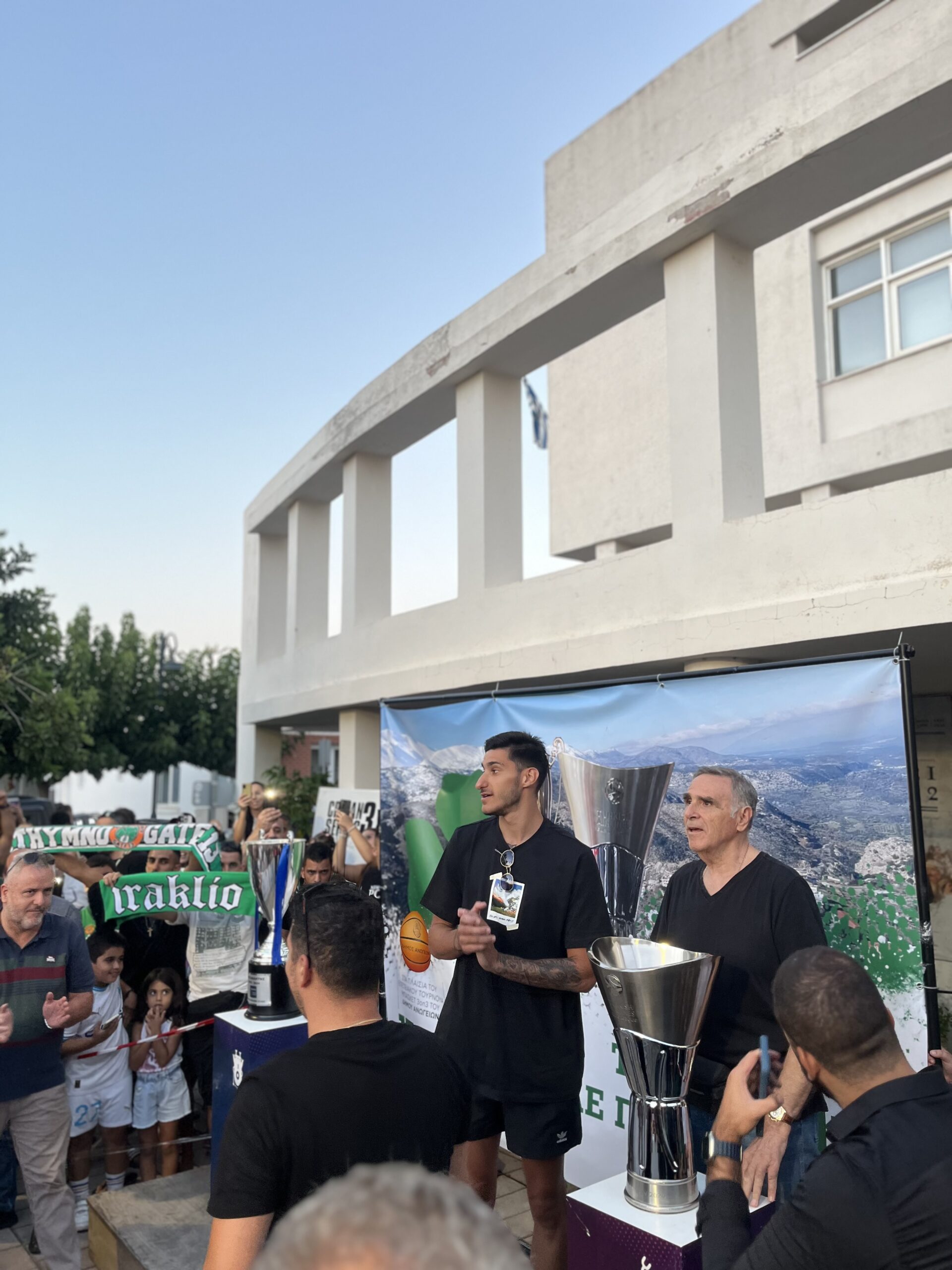 Τα δυο τρόπαια εκτέθηκαν σε ειδικά διαμορφωμένη σκηνή στον χώρο διεξαγωγής του Τουρνουά και έγιναν αντικείμενο αποθεωτικής υποδοχής από δεκάδες φιλάθλους του Παναθηναϊκού που συνέρευσαν στα Ανώγεια απ’ όλη την Κρήτη.