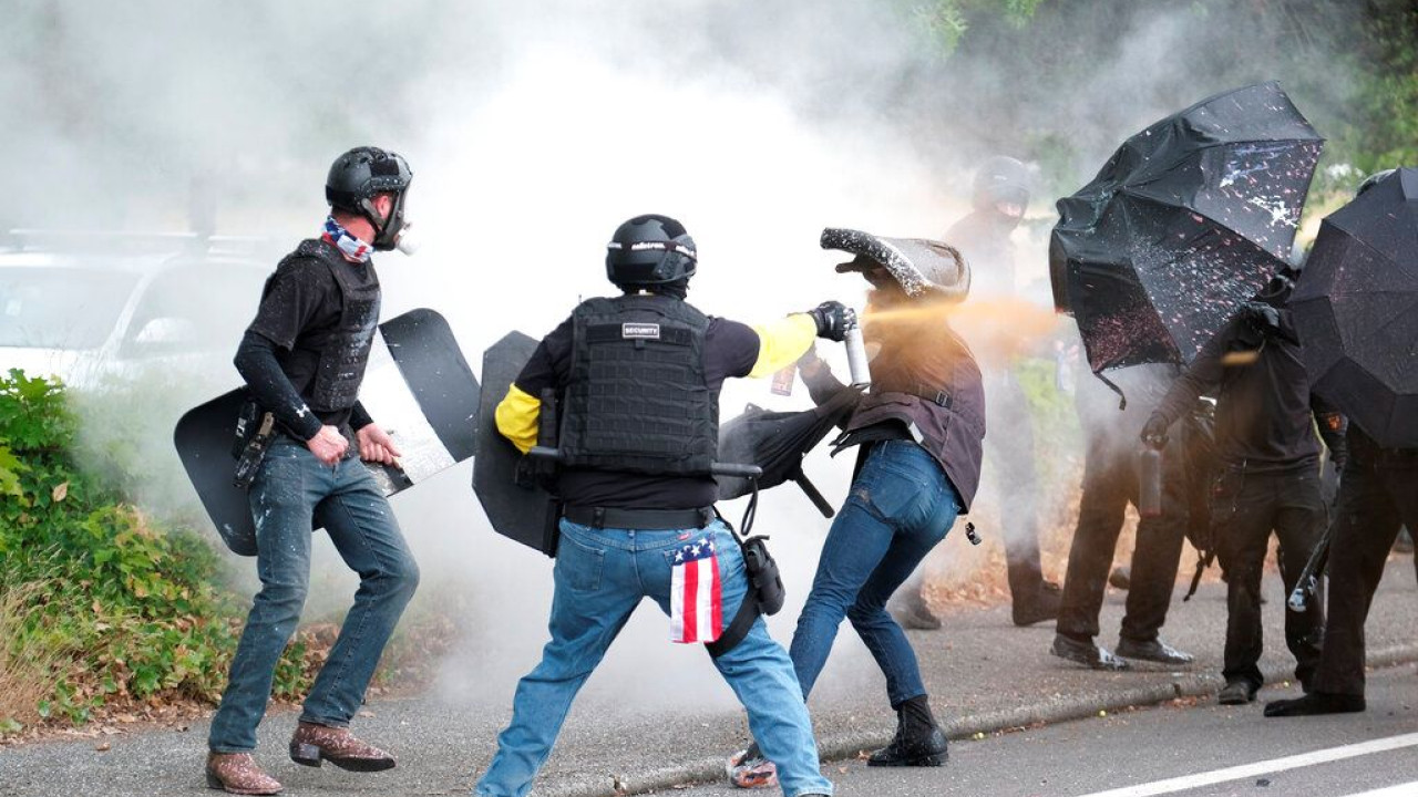 «Θα βγούμε εκεί έξω και θα τους κάνουμε μεγάλο νούμερο στο Πόρτλαντ», είπε, περιγράφοντάς τους ως «επαγγελματίες ταραχοποιούς και αναρχικούς».