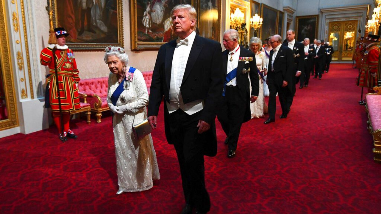 Όταν ο Τραμπ έγινε δεκτός το 2018 από την βασίλισσα Ελισάβετ στο Ουίνδσορ, χαρακτηρίστηκε παγκοσμίως τουλάχιστον αγενής και εντελώς αδαής για το βασιλικό πρωτόκολλο και τους τους καλούς τρόπους: Πρώτον έστησε για δέκα ολόκληρα λεπτά την ηλικιωμένη βασίλισσα μέσα στη ζέστη να τον περιμένει και στη συνέχεια την προσπέρασε κατά την επιθεώρηση του τιμητικού αγήματος, αφήνοντας την 92χρονη Ελισάβετ μερικά βήματα πίσω του.