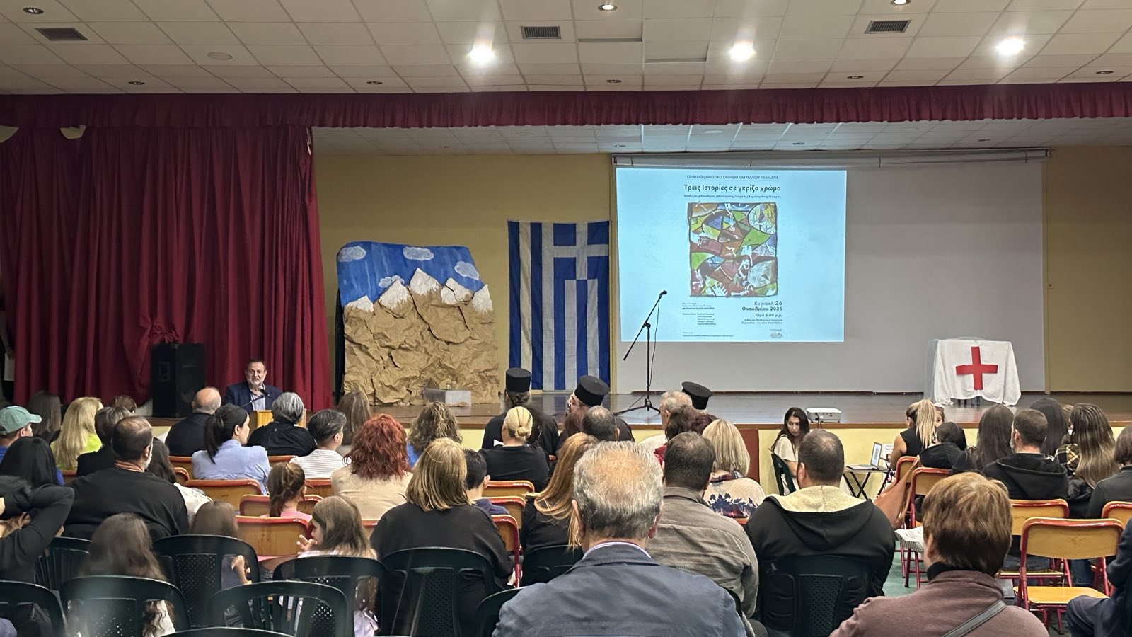 Mία συγκινητική εκδήλωση, πραγματοποιήθηκε την Κυριακή 26 Οκτωβρίου, στην Αίθουσα Πολλαπλών Χρήσεων του Γυμνασίου – Λυκείου Καστελλίου. Η εκδήλωση του Δημοτικού Σχολείου Καστελλίου και του Συλλόγου Γονέων με τίτλο «Τρεις Ιστορίες σε γκρίζο χρώμα», με την υποστήριξη του Δήμου Μινώα Πεδιάδας, αφιερωμένη στην επέτειο της 28ης Οκτωβρίου, τιμώντας τη μνήμη τριών ηρώων της περιοχής – του Μπαλτζάκη Ελευθερίου, του Μπιτζαράκη Γεωργίου και του Χαραλαμπάκη Γεωργίου – οι οποίοι συμμετείχαν στον Ελληνοϊταλικό Πόλεμο, ο καθένας με τη δική του συγκλονιστική ιστορία θυσίας και προσφοράς. Οι δύο πρώτοι έπεσαν μαχόμενοι στις γραμμές της Πέμπτης Μεραρχίας Κρητών, ενώ ο τρίτος επέστρεψε ανάπηρος, παγόπληκτος από τα χιονισμένα βουνά της Αλβανίας.