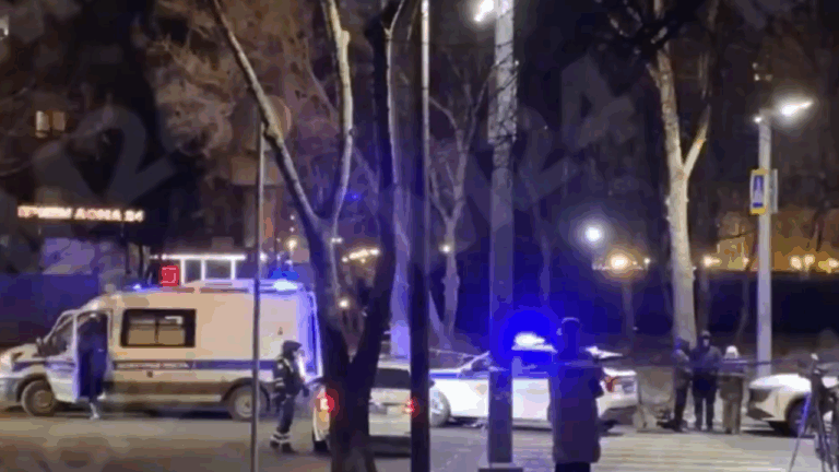 Πλάνα που μεταδόθηκαν από τη ρωσική τηλεόραση δείχνουν την περιοχή να έχει αποκλειστεί από αστυνομικές δυνάμεις.
