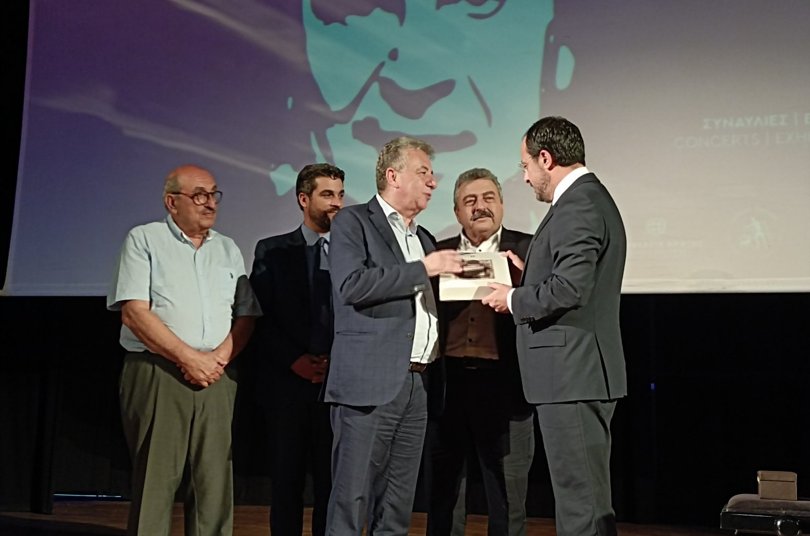 Ο κ. Χριστοδουλίδης μίλησε λόγια για το πλούσιο έργο του Έλληνα μουσικοσυνθέτη και αναφέρθηκε στη σχέση του σπουδαίου συνθέτη με την Κύπρο επισημαίνοντας ότι στάθηκε δίπλα σε όλους τους αγώνες του Κυπριακού λαού.