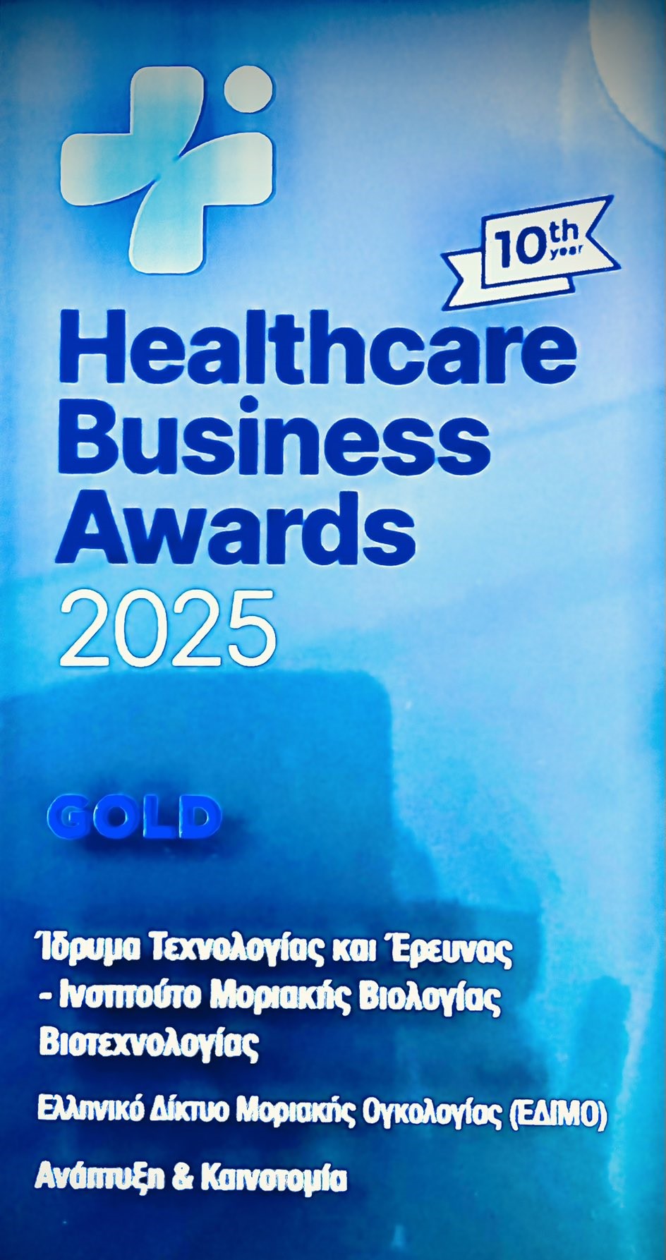 Βραβείο GOLD στην κατηγορία «Ανάπτυξη & Καινοτομία» έλαβε το Ελληνικό Δίκτυο Μοριακής Ογκολογίας (ΕΔΙΜΟ), το οποίο συστάθηκε με πρωτοβουλία του Ινστιτούτου Μοριακής Βιολογίας και Βιοτεχνολογίας του ΙΤΕ, τον Ιούνιο του 2022 και λειτουργεί υπό την εποπτεία της Γενικής Γραμματείας Έρευνας και Καινοτομίας του Υπουργείου Ανάπτυξης. Οι υπηρεσίες του δικτύου συμβάλλουν στην πρόληψη, τη διάγνωση και τη θεραπεία του καρκίνου και στην εξατομίκευση της περίθαλψης των ογκολογικών ασθενών. Με συμμετοχή 8 ερευνητικών και ακαδημαϊκών φορέων και χρηματοδότηση από το Ταμείο Ανάκαμψης, προσφέρει δωρεάν αναλύσεις βιοδεικτών για καρκίνο, συμβάλλοντας στην έγκαιρη διάγνωση, εξατομικευμένη θεραπεία και πρόληψη σε χιλιάδες ασθενείς. Το ψηφιακό μητρώο, η πλατφόρμα κλινικής επισημείωσης γενετικών αποτελεσμάτων και τα αυστηρά πρωτόκολλα προστασίας προσωπικών δεδομένων αναδεικνύουν το ΕΔΙΜΟ σε πρότυπο σύγχρονης, βιώσιμης υγειονομικής φροντίδας. Συνδυάζοντας κοινωνική δικαιοσύνη με την επιστημονική καινοτομία, συμβάλλει ουσιαστικά στη διαμόρφωση της εθνικής στρατηγικής για τον καρκίνο.