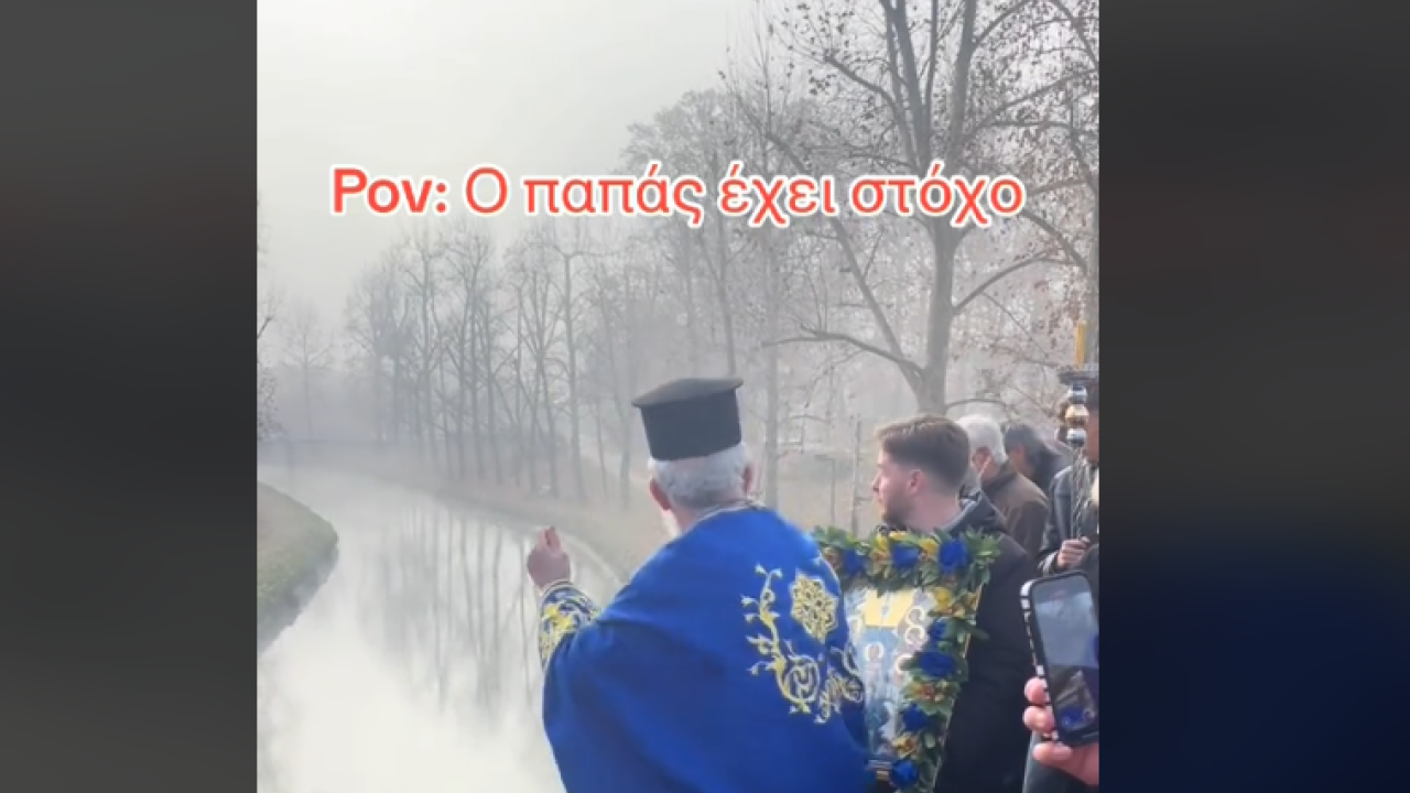 Σε μία δεύτερη προσπάθεια ο ιερέας έριξε στο νερό τον σταυρό.