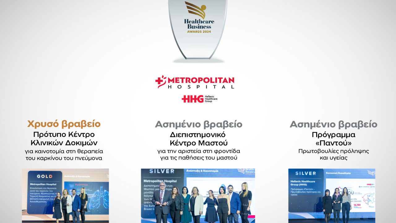 Με τρεις σημαντικές διακρίσεις στα Healthcare Business Awards 2024 τιμήθηκε ο Όμιλος HHG (Hellenic Healthcare Group)