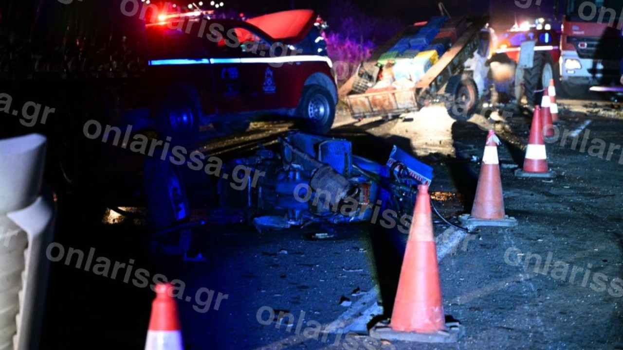 Ένα σοκαριστικό τροχαίο δυστύχημα έγινε σήμερα το απόγευμα έξω από τη Λάρισα, με αποτέλεσμα δύο άτομα να χάσουν τη ζωή τους και τουλάχιστον ένα ακόμα να τραυματιστεί σοβαρά