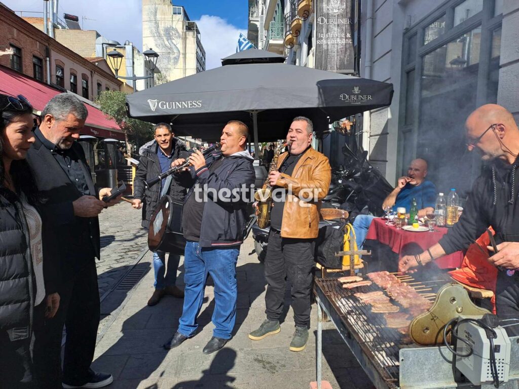 Οι Θεσσαλονικείς γιορτάζουν και φέτος την Τσικνοπέμπτη στο υπαίθριο πάρτι που έχει στηθεί στην Βασιλέως Ηρακλείου.