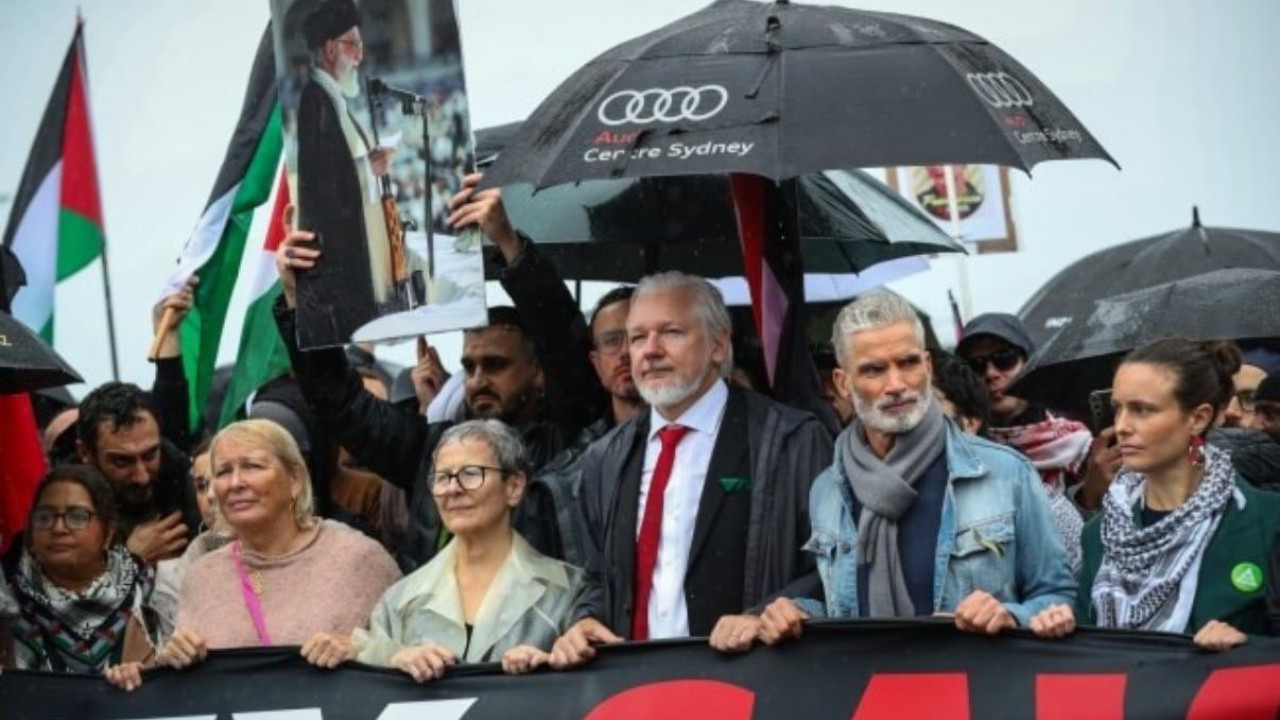 WikiLeaks founder Julian Assange took part in a march against Gaza genocide on the Sydney Harbour Bridge. pic.twitter.com/4Pd6gUPdSX