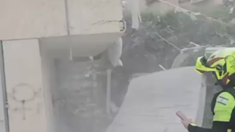 Πιο συγκεκριμένα, διακρίνεται μια κατεστραμμένη πολυκατοικία, με τους τοίχους να έχουν διαλυθεί, μπάζα να κρέμονται, ενώ η πρόσοψη έχει καταστραφεί ολοκληρωτικά.
