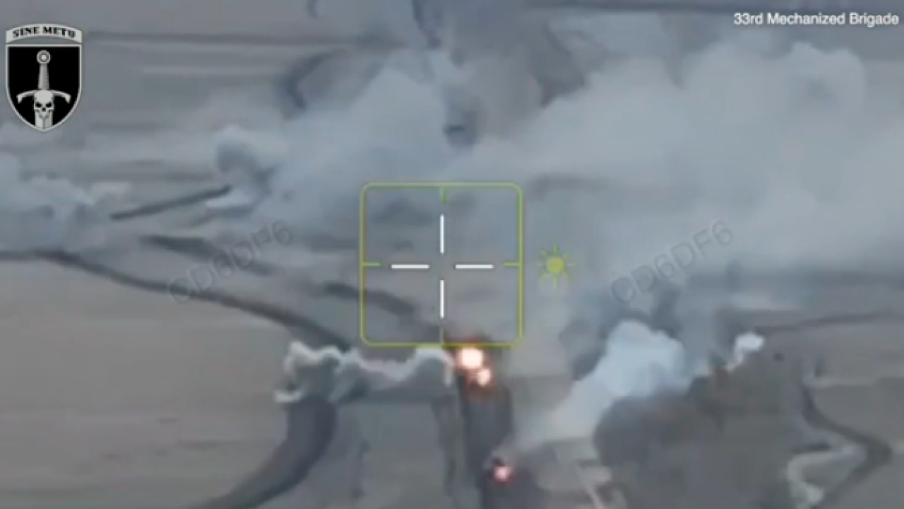 Πλάνα δείχνουν το τανκ να ανατινάζει τρία τεθωρακισμένα φορτηγά και δύο τανκς σε δρόμο στην ανατολική Ουκρανία, κοντά στην πόλη Κουράχοβε.