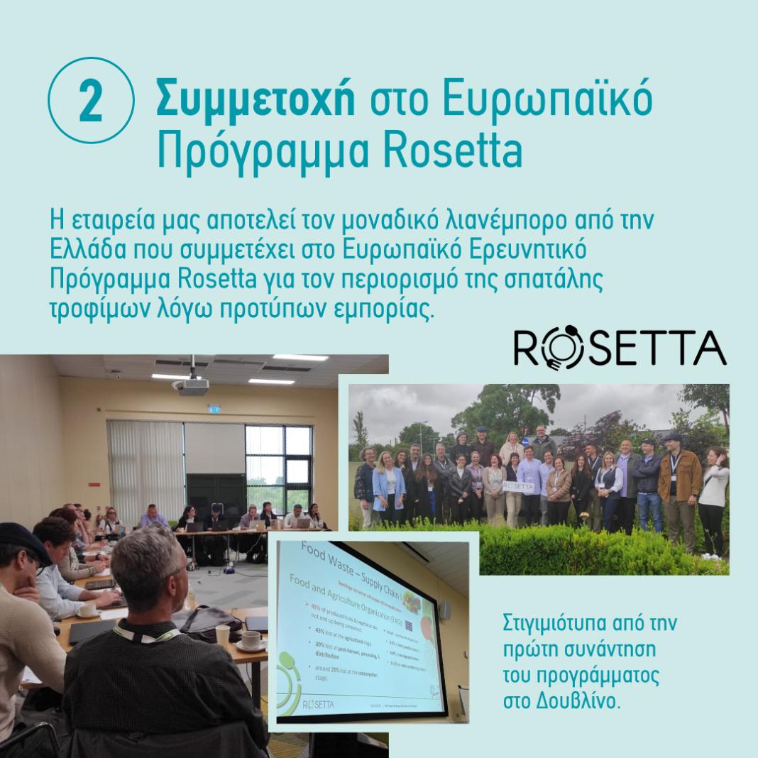Συμμετοχή στο Πρόγραμμα Rosetta: Είμαστε υπερήφανοι που αποτελούμε τον μοναδικό λιανέμπορο στην Ελλάδα που συμμετέχει στο Ευρωπαϊκό Ερευνητικό Πρόγραμμα Rosetta για τον περιορισμό της σπατάλης τροφίμων λόγω προτύπων εμπορίας.