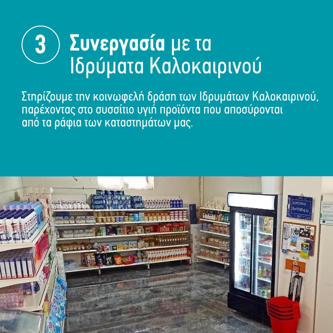 Στήριξη Ευπαθών Κοινωνικών Ομάδων: Στηρίζουμε τη δράση των Φιλανθρωπικών Ιδρυμάτων Καλοκαιρινού, προσφέροντας υγιή προϊόντα που αποσύρονται από τα ράφια μας στο συσσίτιο, μειώνοντας τη σπατάλη τροφίμων και βοηθώντας όσους έχουν ανάγκη.
