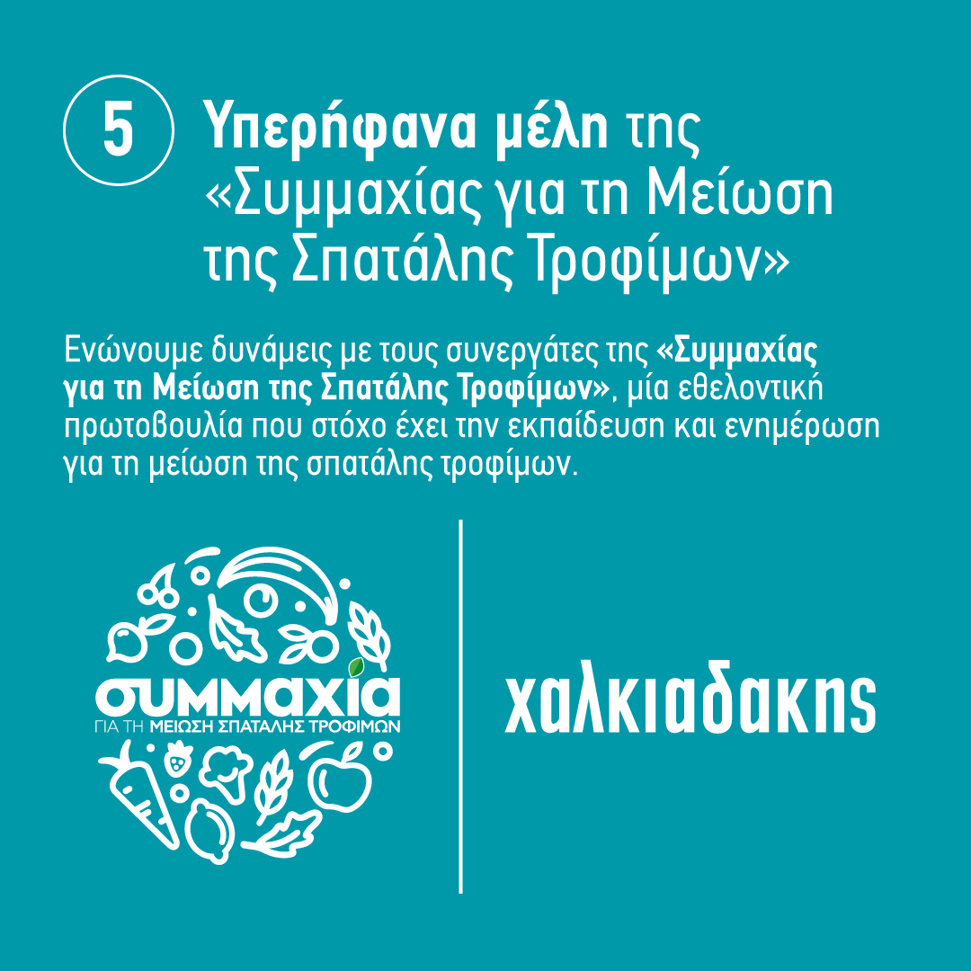 Εκπαίδευση και Ενημέρωση: Συμμετέχουμε στη «Συμμαχία για τη Μείωση της Σπατάλης Τροφίμων», μια εθελοντική πρωτοβουλία που στοχεύει στην εκπαίδευση και ενημέρωση του κοινού για τη μείωση της σπατάλης.