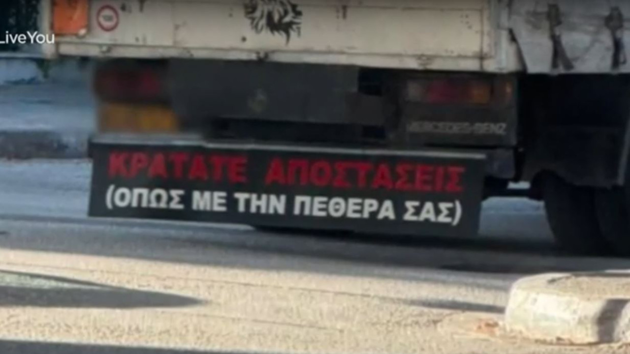 Viral έχει γίνει τις τελευταίες ώρες η επιγραφή ενός επαγγελματία οδηγού φορτηγού στο όχημά του, προκειμένου να θυμίσει στους άλλους οδηγούς να κρατάνε τις αποστάσεις ασφαλείας.
