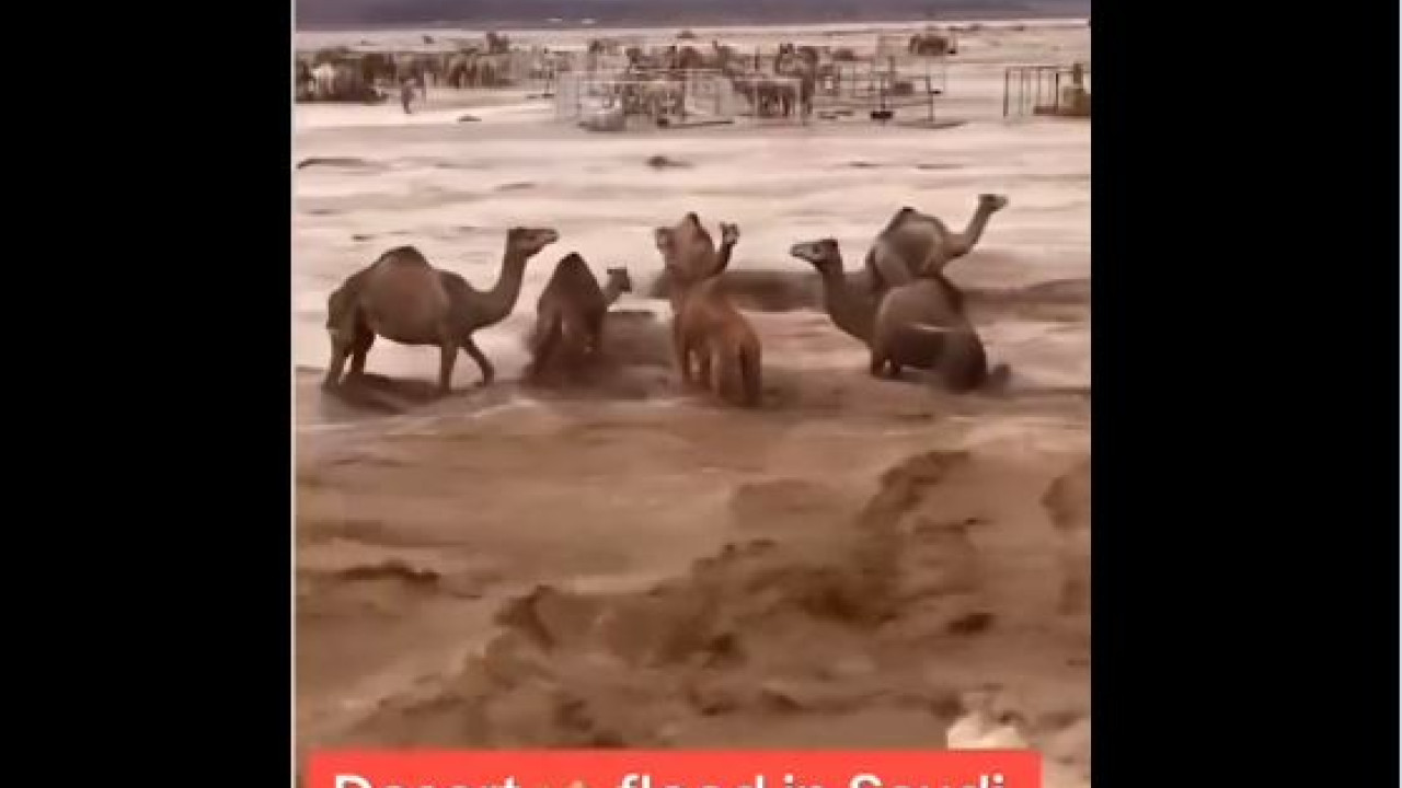 Viral έχει γίνει τις τελευταίες ώρες στο διαδίκτυο βίντεο που δείχνει καμήλες να παρασύρονται από τα ορμητικά νερά στην έρημο της Σαουδικής Αραβίας, που στο διάβα τους παρασέρνουν ό,τι βρουν.