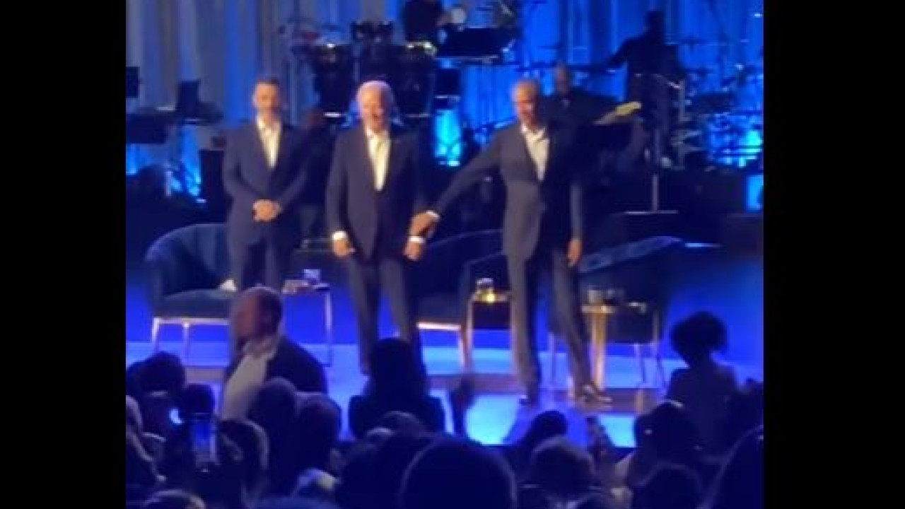 NEW: Former President Barack Obama has to help guide a confused President Biden off stage as he appears to freeze at an L.A. fundraiser.