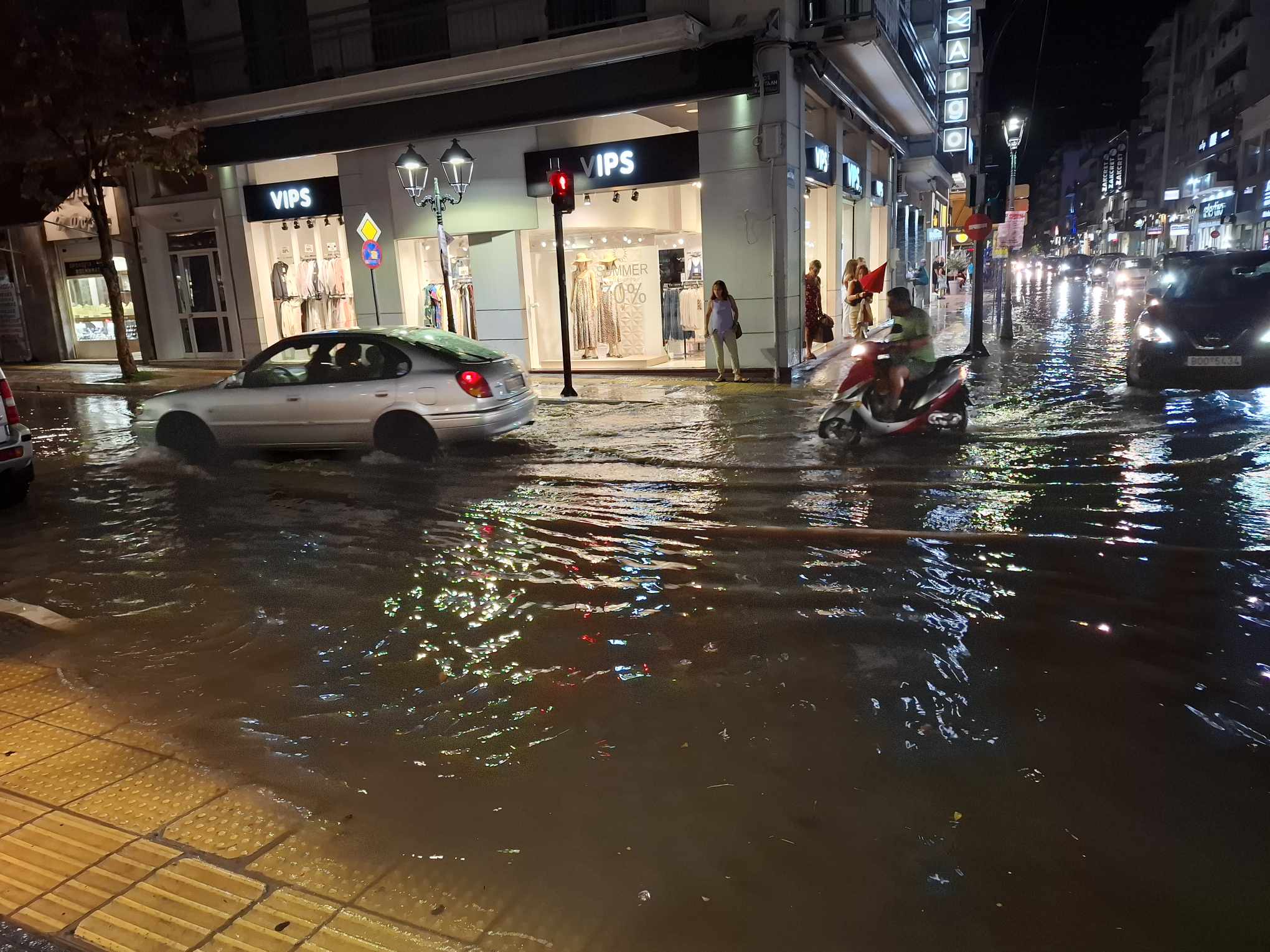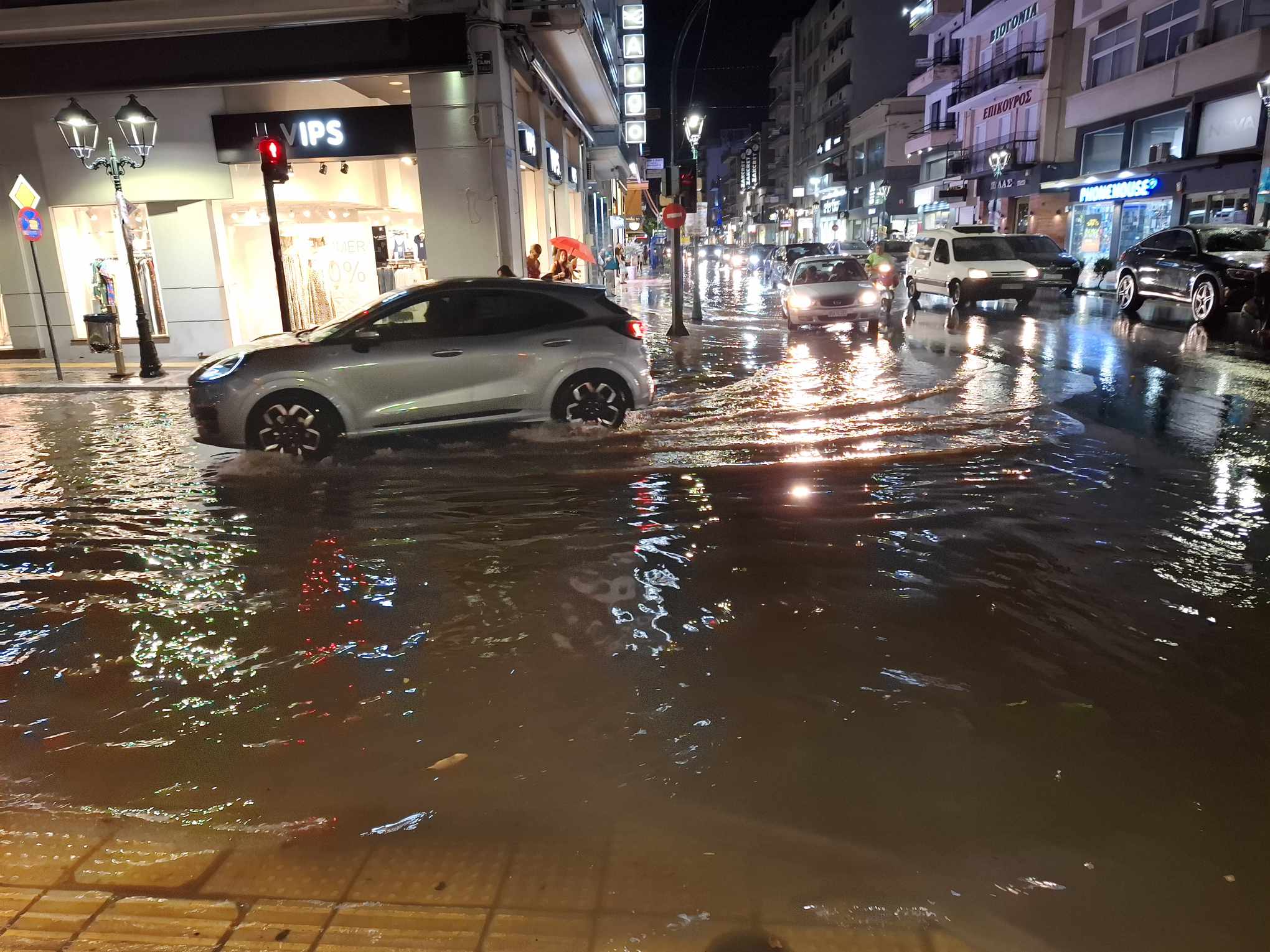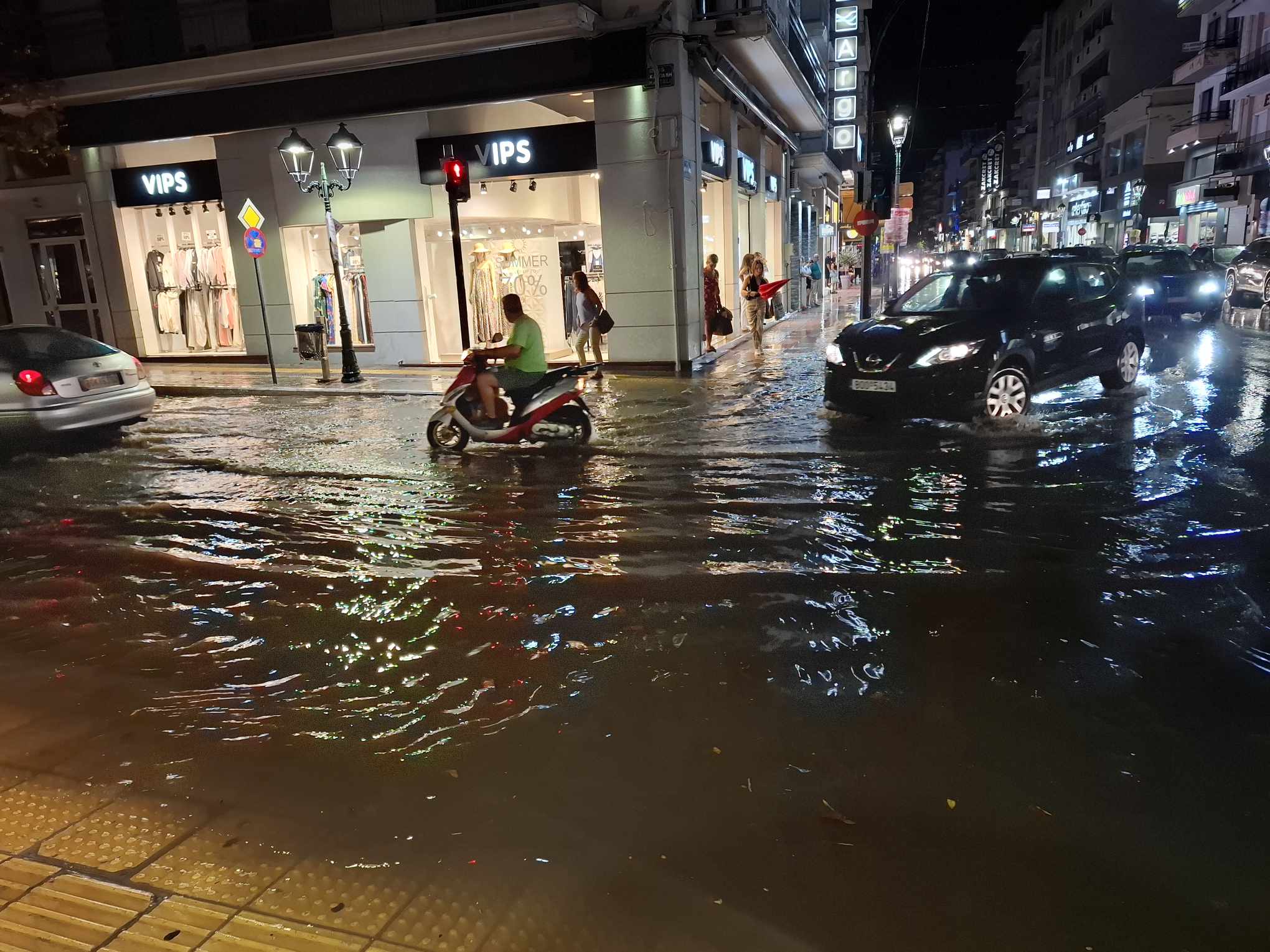 Προβλήματα δημιουργήθηκαν στο κέντρο της πόλης, με δρόμους να πλημμυρίζουν.