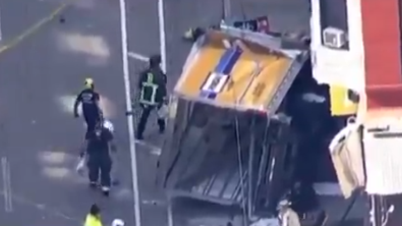 Η αστυνομία δεν έδωσε το όνομα του οδηγού ή τις συνθήκες που οδήγησαν στο ατύχημα. Εικόνες από τον τόπο του ατυχήματος έδειχναν το φορτηγό στο πλάι περιτριγυρισμένο από αστυνομικούς και πυροσβέστες.