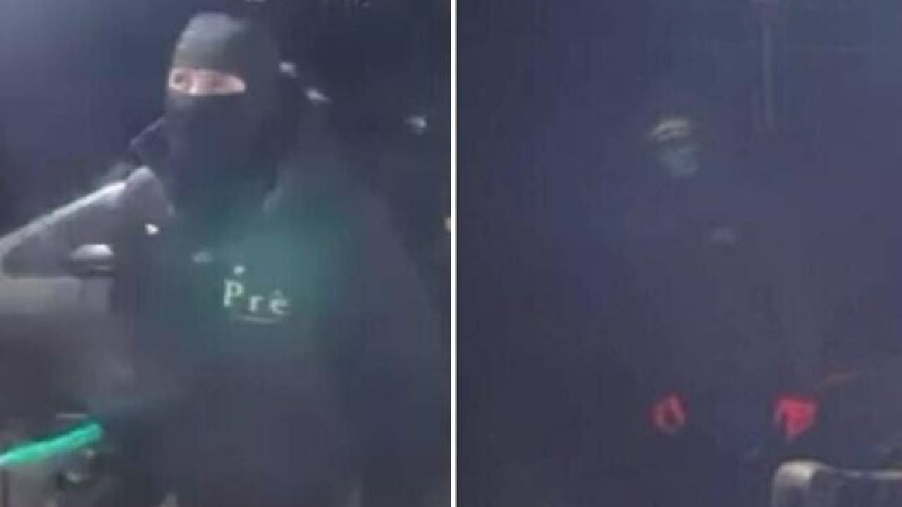 Η αστυνομία έδωσε στη δημοσιότητα πλάνα όπου διακρίνονται δύο μασκοφόροι με σκούρα ρούχα να πλησιάζουν στην είσοδο, να ρίχνουν εύφλεκτο υλικό και να βάζουν φωτιά.