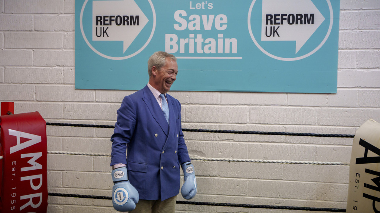 Δημοσκόπηση που δημοσιοποιήθηκε χθες Δευτέρα υποδεικνύει πως το ακροδεξιό, λαϊκιστικό κόμμα Reform UK, του οποίου ηγείται ο εκ των πρωταγωνιστών της εκστρατείας υπέρ του Brexit Νάιτζελ Φαράτζ, προσελκύει το υψηλότερο ποσοστό των προθέσεων ψήφου, με άλλα λόγια αναδεικνύεται πρώτη πολιτική δύναμη στη Βρετανία, γεγονός άνευ προηγουμένου.
