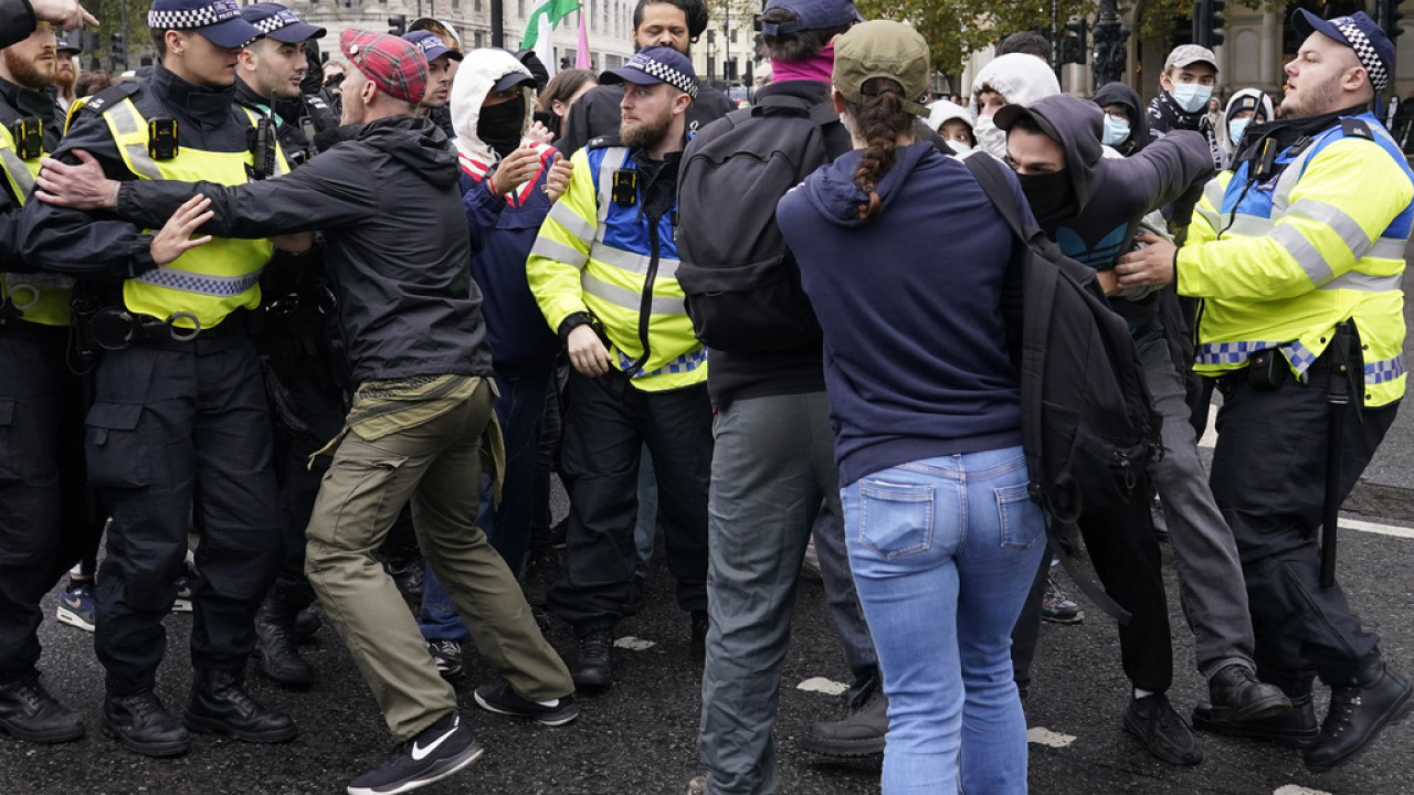 «Δυστυχώς, είδαμε άλλη μια διαμαρτυρία, η οποία ξεκίνησε ειρηνικά, να κλιμακώνεται σε άσκοπη βία, με άτομα να τραυματίζουν για άλλη μια φορά έναν από τους αστυνομικούς μας και να προκαλούν ζημιές σε ένα αστυνομικό όχημα», δήλωσε ο Αρχιστράτηγος Σάιμον Άνσλοου.