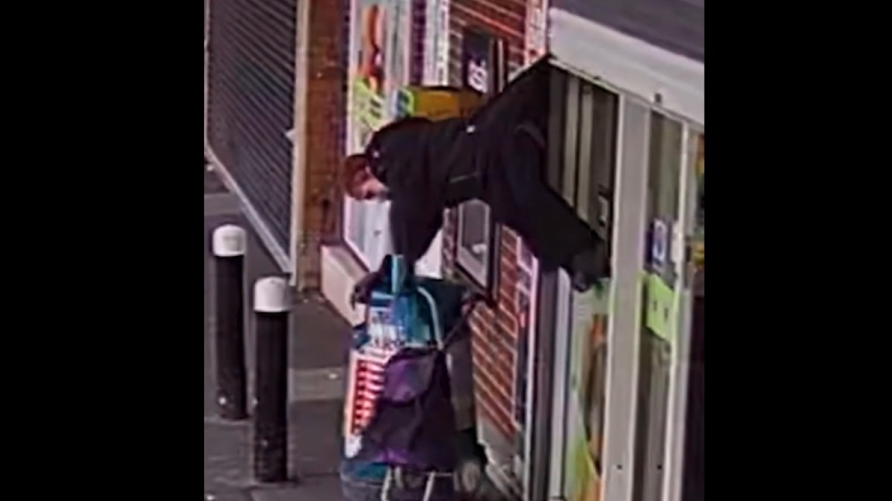 Την στιγμή που μια ηλικιωμένη βρέθηκε στον αέρα καθώς το παλτό της πιάστηκε στα ρολά ενός καταστήματος, κατέγραψε κάμερα στο Ηνωμένο Βασίλειο.