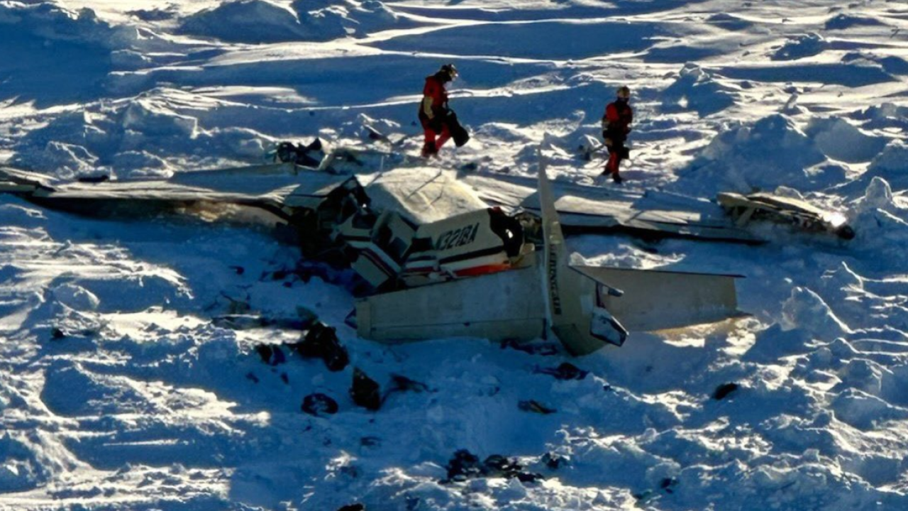 Τα συντρίμμια βρέθηκαν σε χιονισμένο έδαφος, 34 μίλια (55 χλμ.) νοτιοανατολικά του Νόουμ, ανέφερε η ακτοφυλακή σε ανάρτηση που περιλάμβανε μια φωτογραφία των συντριμμιών στο χιόνι και δύο μέλη της ομάδας ανάκτησης.
