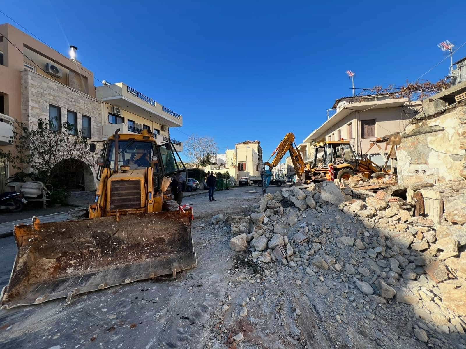 Ολοκληρώθηκαν οι εργασίες του Δήμου Χανίων για την κατεδάφιση ετοιμόρροπου κτηρίου επί της οδού Αλέκου Παναγούλη, στην περιοχή του Κουμπέ.