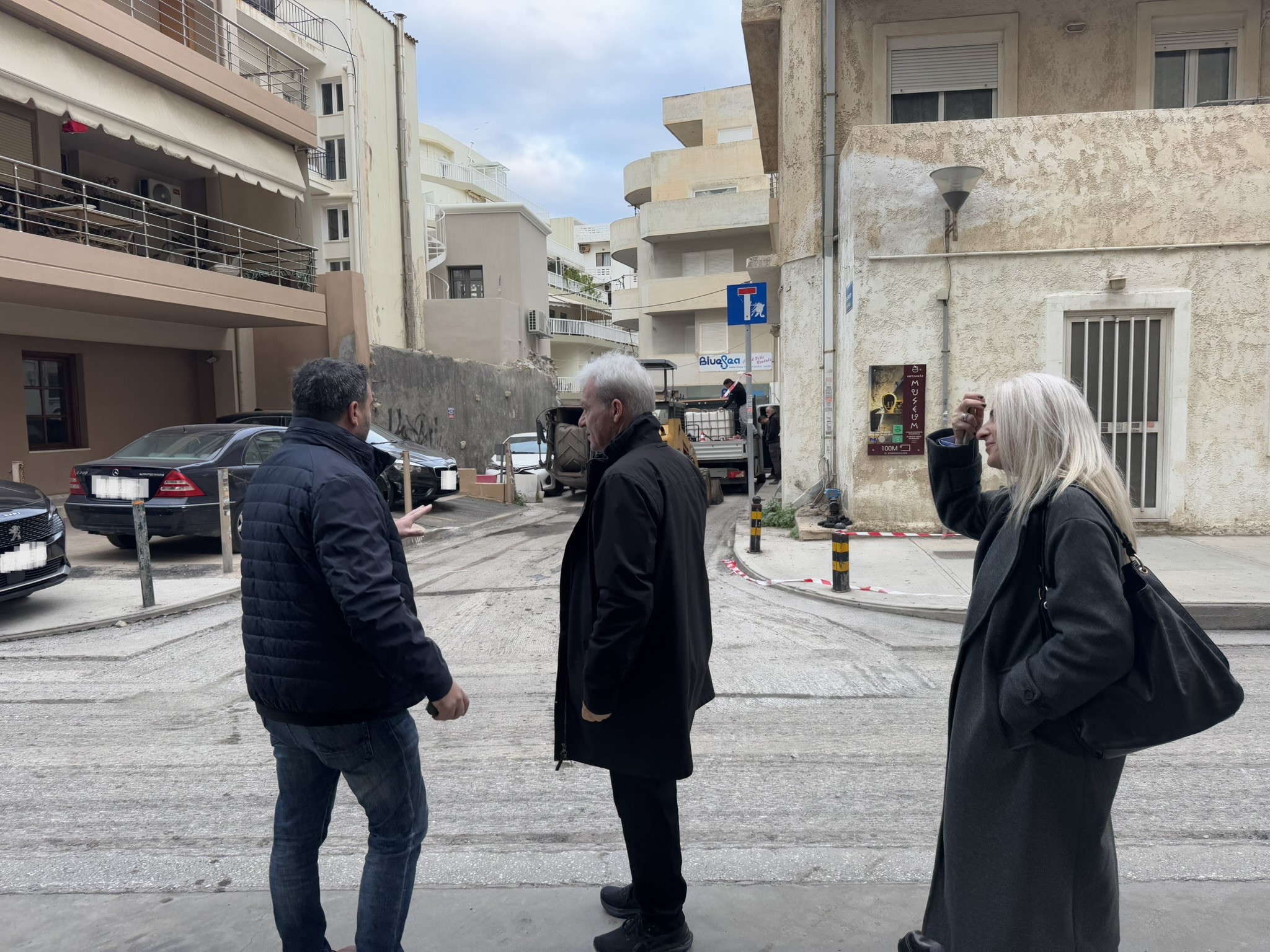Νωρίς ο πρωί της Παρασκευής 17/1, ο Δήμαρχος Ηρακλείου Αλέξης Καλοκαιρινός, μαζί με τον Αντιδήμαρχο Τεχνικών Υποδομών & Βιώσιμης Κινητικότητας Γιώργο Σισαμάκη και την Πρόεδρο της 1ης Δημοτικής Κοινότητας Θεοδοσία Αγγελιδάκη πραγματοποίησαν αυτοψία στο σημείο των εργασιών, συνομιλώντας παράλληλα με κατοίκους και επιχειρηματίες της περιοχής, οι οποίοι εξέφρασαν την ικανοποίησή τους για την έναρξη των εργασιών.
