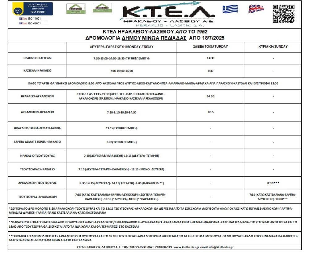 ΔΡΟΜΟΛΟΓΙΑ ΔΗΜΟΥ ΜΙΝΩΑ ΠΕΔΙΑΔΑΣ ΑΠO 18/7/2025