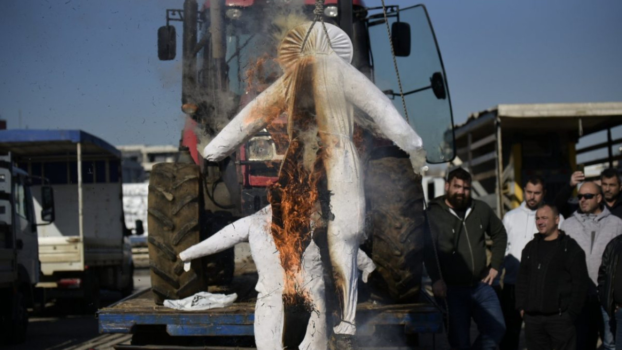 Σε μια συμβολική κίνηση, οι μελισσοκόμοι έβαλαν φωτιά σε ομοίωμα μελισσοκόμου.