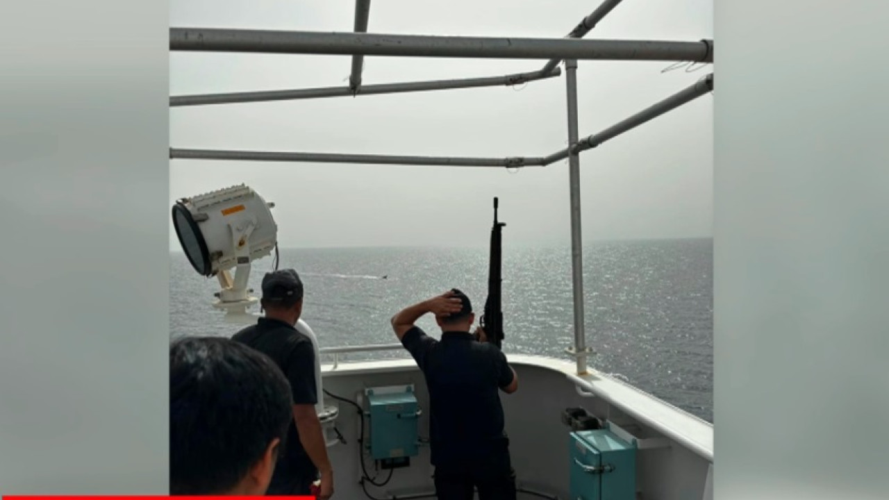 Το βίντεο έχει τραβηχτεί δευτερόλεπτα μετά την επίθεση, και διακρίνονται τόσο το πλήρωμα όσο και οι ένοπλοι φρουροί του πλοίου σε καθεστώς πανικού να έχουν καταφύγει στη γέφυρα