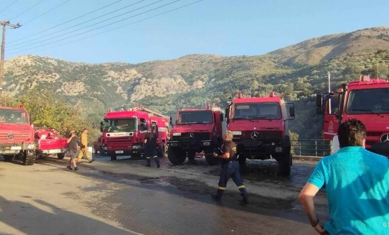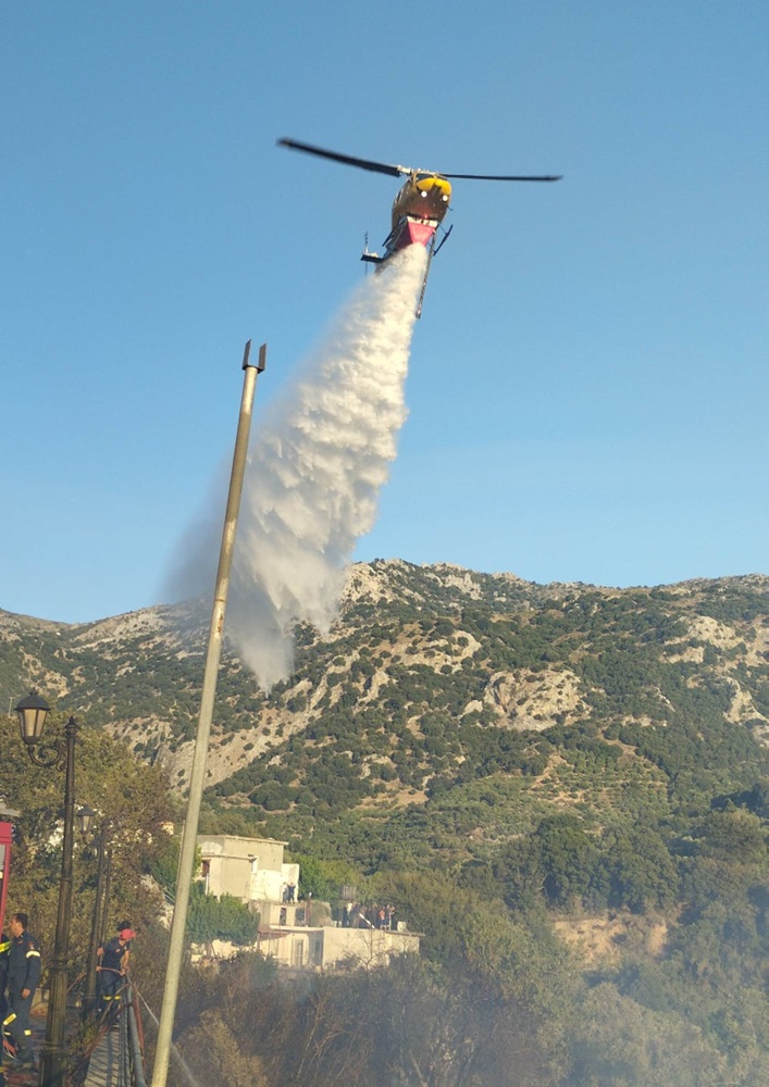 Η φωτιά εκδηλώθηκε σε δύσβατη περιοχή και για τη κατάσβεσή της επιχείρησαν 15 οχήματα με 40 άνδρες της Πυροσβεστικής και μια υδροφόρα του δήμου ενώ ρίψεις νερού πραγματοποίησαν δύο πυροσβεστικά ελικόπτερο.