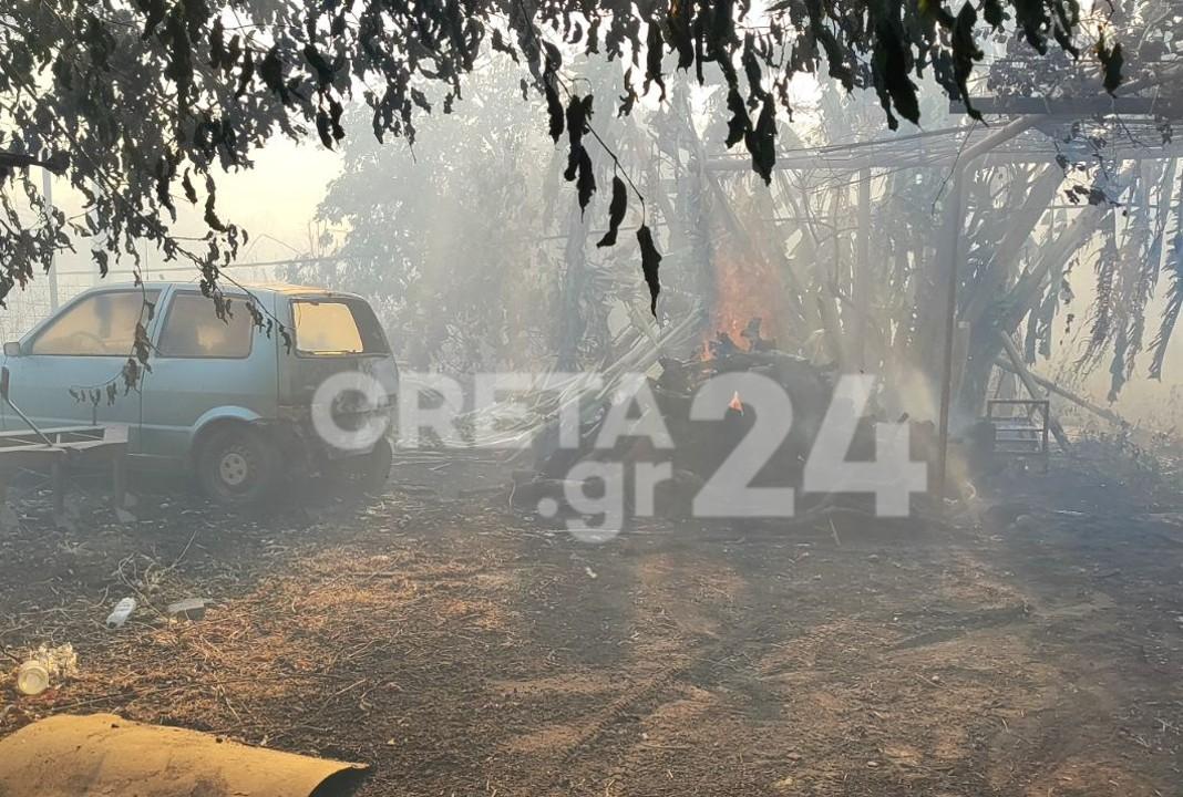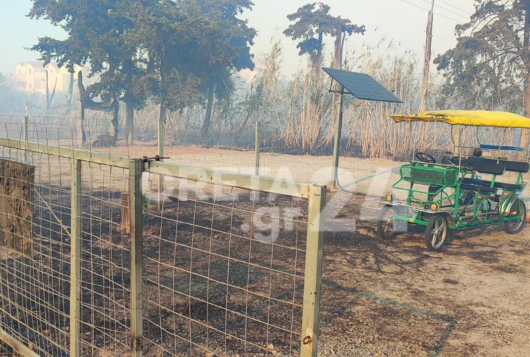 Οι φλόγες έφτασαν σε αυλές σπιτιών, προκαλώντας ζημιές ενώ από την φωτιά κάηκαν και αυτοκίνητα.
