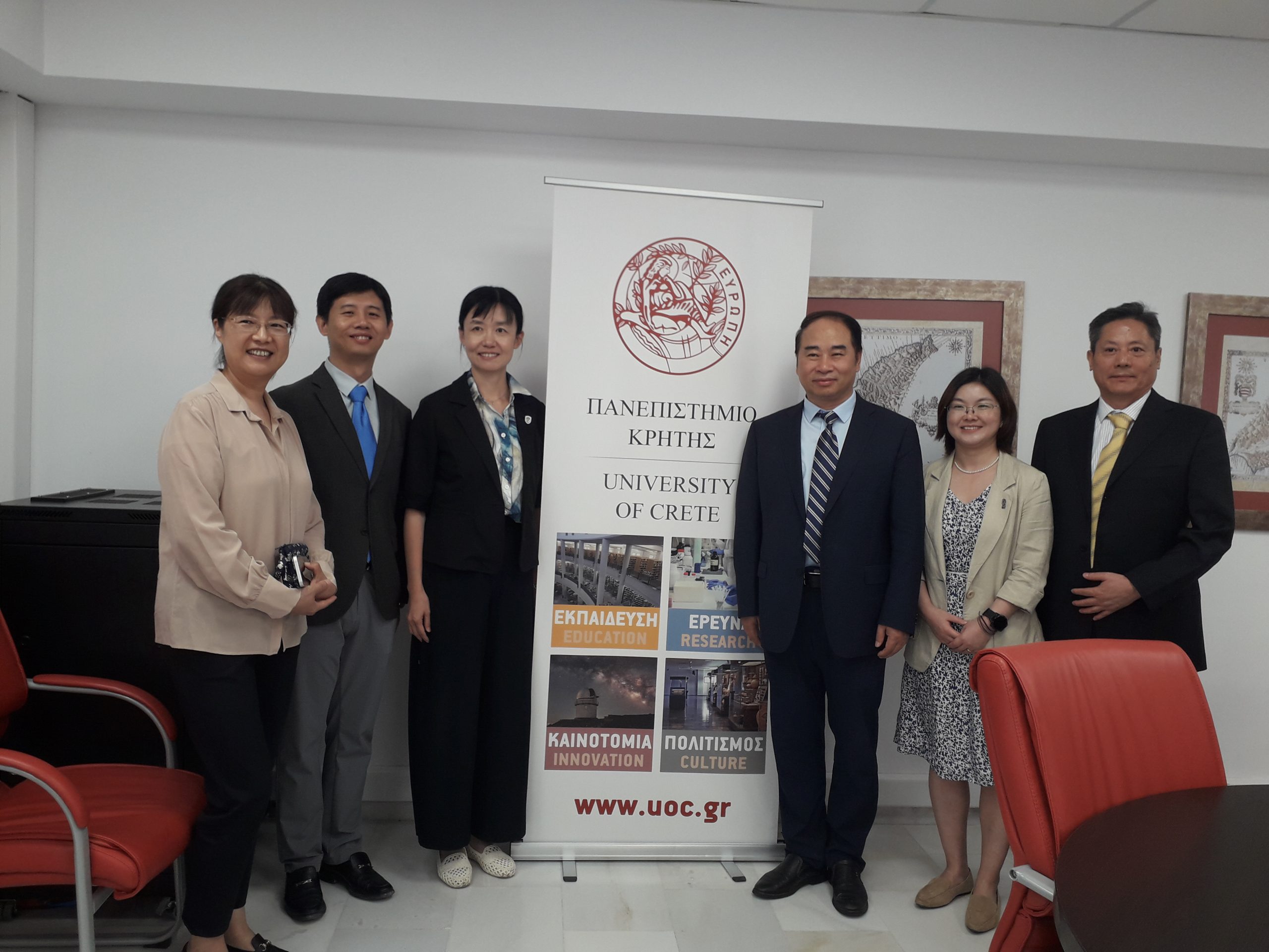 Την Τετάρτη 3 Ιουλίου 2024, στην Πανεπιστημιούπολη Γάλλου στο Ρέθυμνο οι Πρυτανικές Αρχές του Πανεπιστημίου Κρήτης υποδέχθηκαν εξαμελή αντιπροσωπεία του κινεζικού ιδρύματος Βeijing Foreign Studies University με επικεφαλής τον Πρόεδρο του Συμβουλίου Διοίκησης Καθηγητή WANG Dinghua. Οι εργασίες της συνάντησης ολοκληρώθηκαν με την υπογραφή Μνημονίου Συνεργασίας μεταξύ των δύο πλευρών.