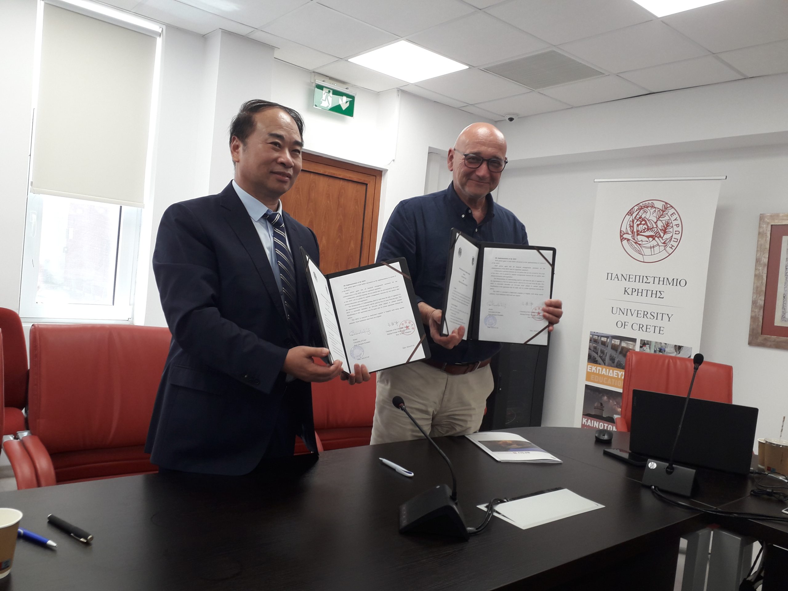 Επιπλέον, η Κίνα έχει ιδιαίτερο ενδιαφέρον για το Πανεπιστήμιο Κρήτης. Το ΠΚ έχει συνάψει ήδη μνημόνια συνεργασίας με Ανώτατα Εκπαιδευτικά Ιδρύματα της Κίνας στο πλαίσιο των οποίων οργανώνονται θερινά σχολεία καθώς και ανταλλαγές διδακτικού προσωπικού. Χαρακτηριστικό παράδειγμα αποτελεί το Κέντρο Ελληνικού και Κινεζικού Πολιτισμού (ΚΕΛΚΙΠ). Η συνάντηση με τα στελέχη του Βeijing Foreign Studies University είναι μια πρώτη προσπάθεια διερεύνησης περαιτέρω συνεργασίας, ανταλλαγών φοιτητών και μελών της ακαδημαϊκής κοινότητας με στόχο τη διδασκαλία και την έρευνα.