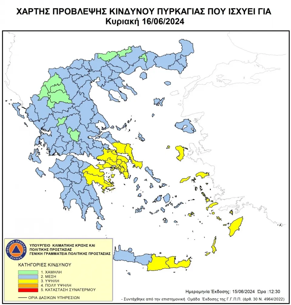⚠️ Χάρτης Πρόβλεψης Κινδύνου Πυρκαγιάς 🔥 για αύριο Κυριακή 16/6