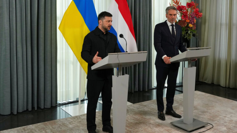 Μιλώντας στην Χάγη κατά την διάρκεια κοινής συνέντευξης Τύπου με τον υπηρεσιακό Ολλανδό πρωθυπουργό Ντικ Σχοφ, ο Ζελένσκι είπε ότι η χρήση των ρωσικών δεσμευμένων περιουσιακών στοιχείων θα βοηθήσουν το Κίεβο να αντισταθμίσει την μείωση της υποστήριξης εκ μέρους ορισμένων από τους εταίρους του. «Δεν βλέπω την πιθανότητα να σταθούμε ισχυροί χωρίς αυτή την υποστήριξη», δήλωσε ο Ζελένσκι στους δημοσιογράφους.
